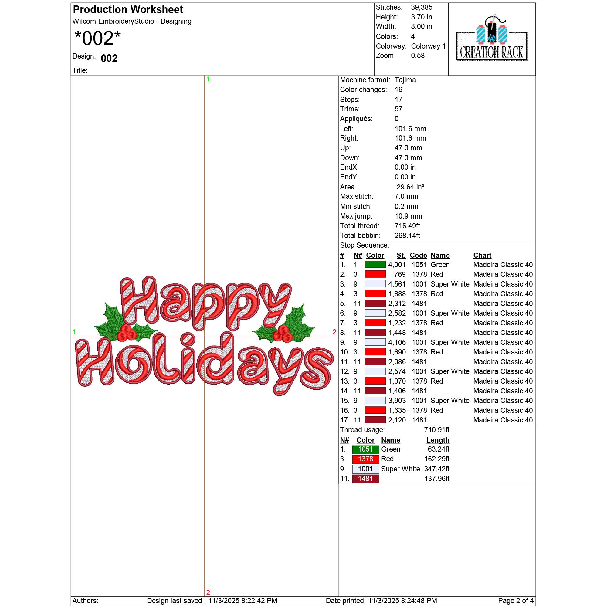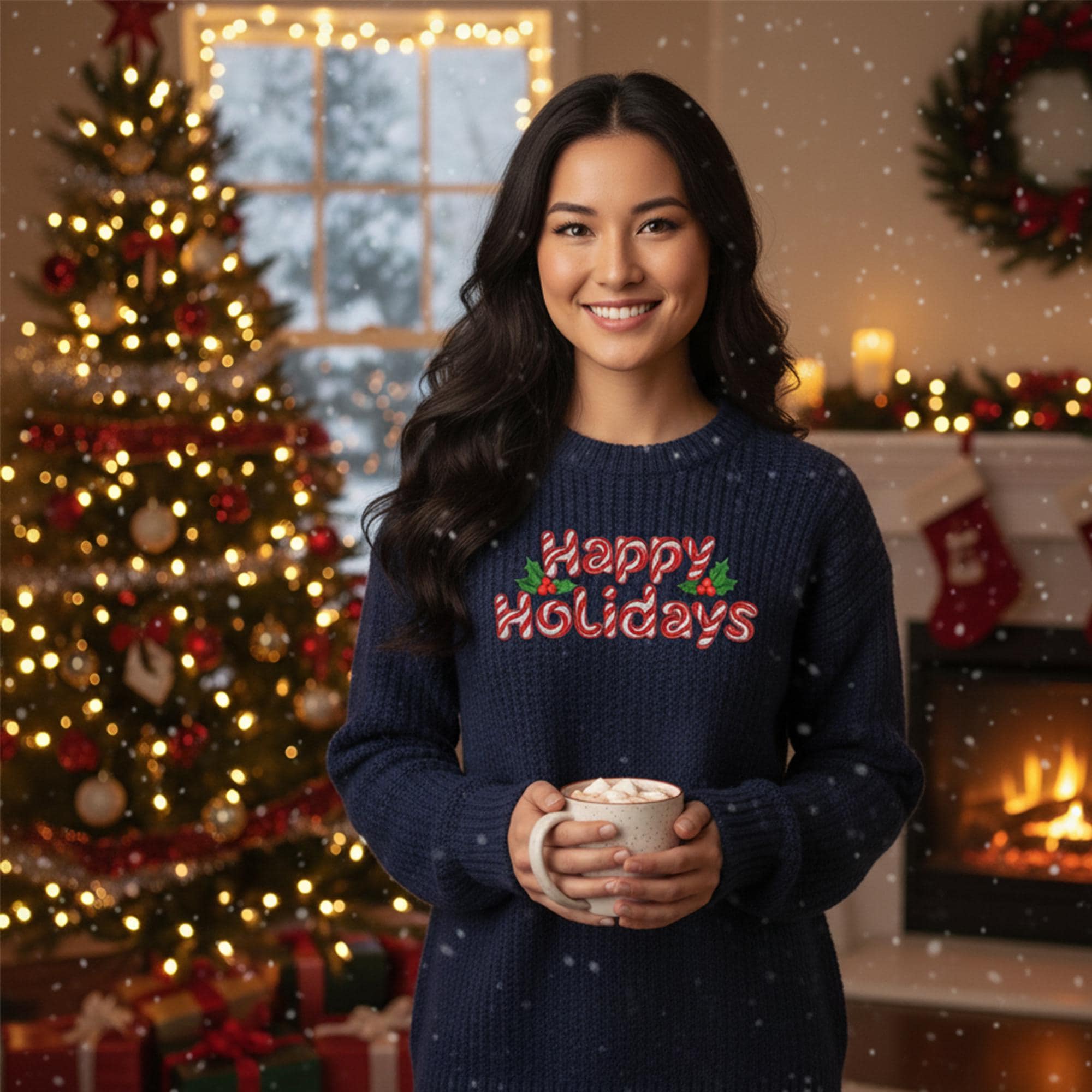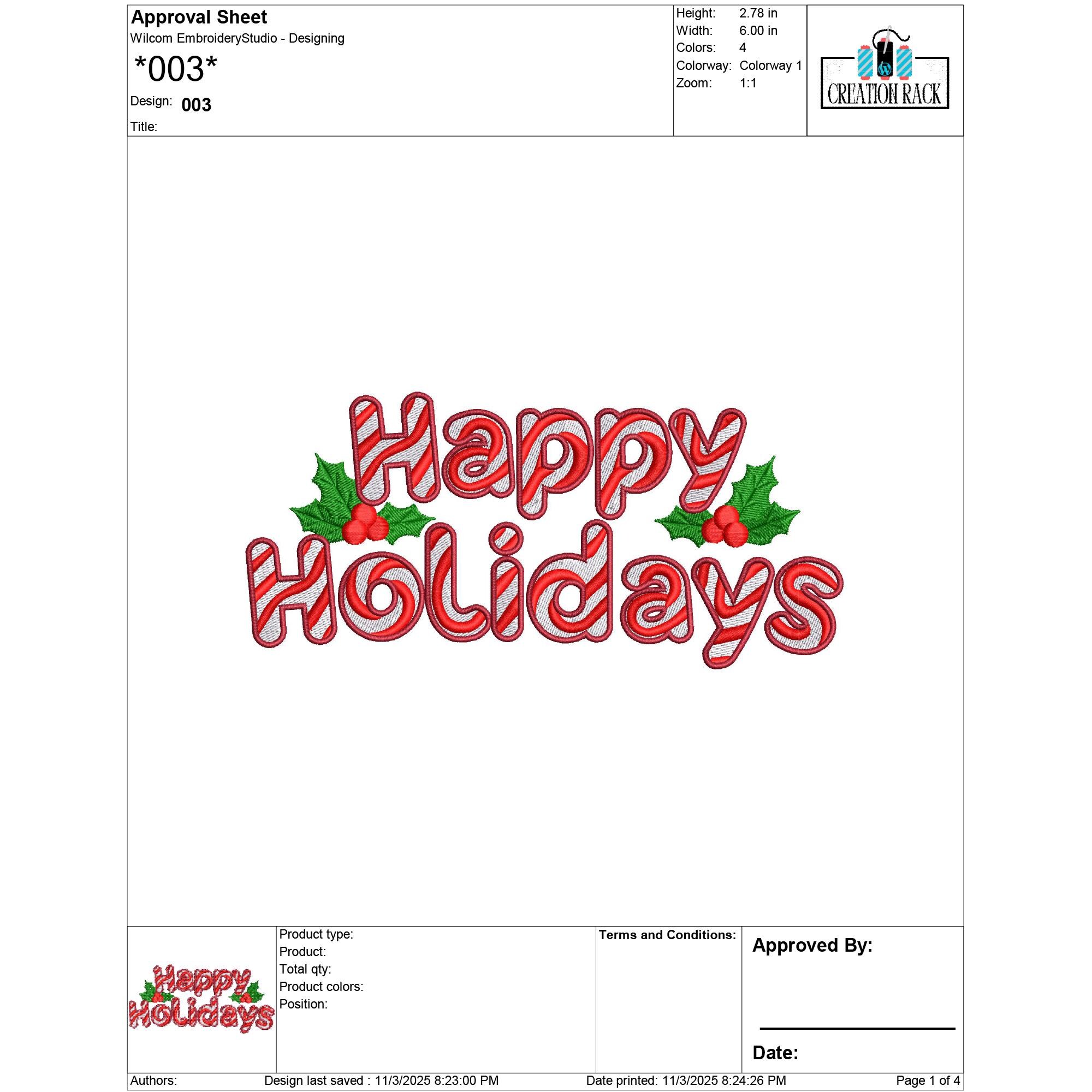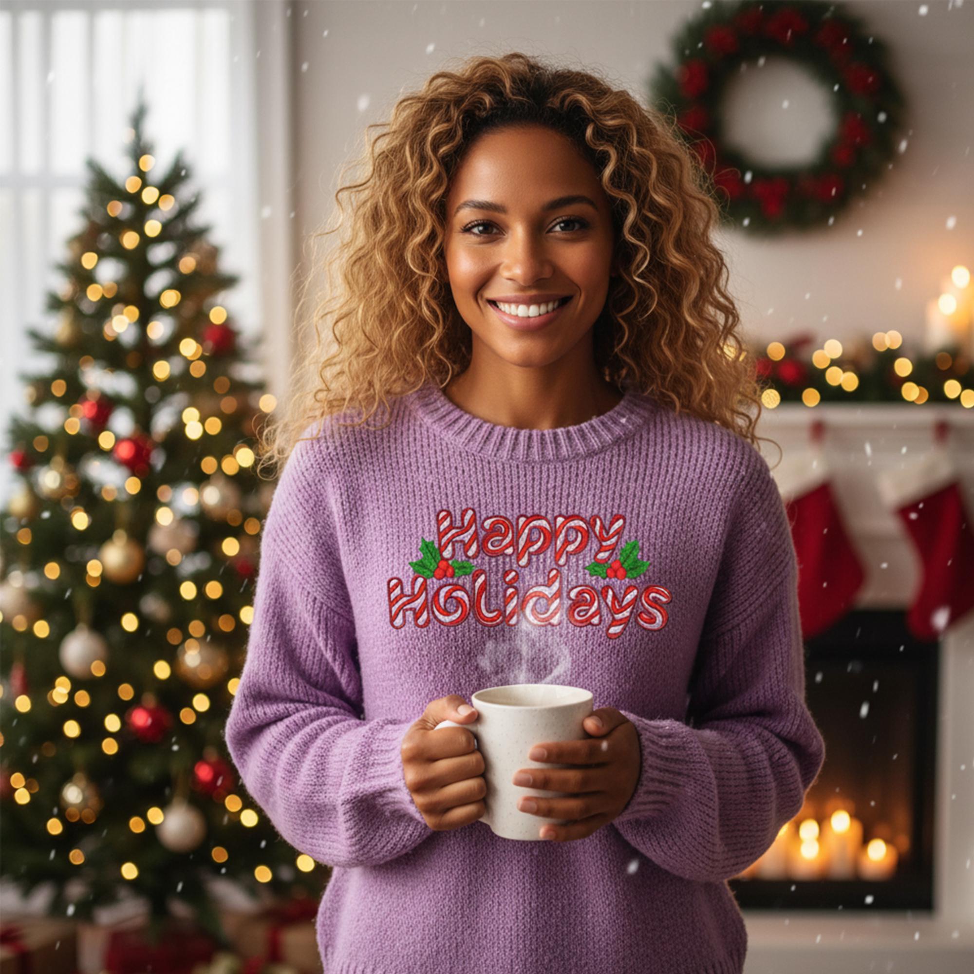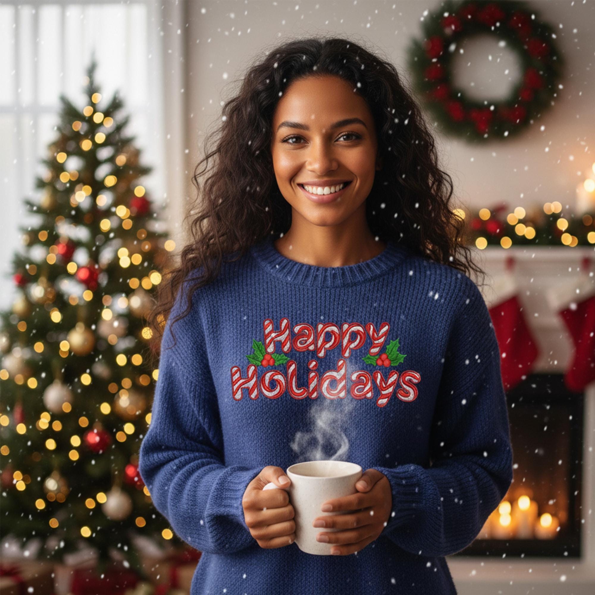 Add festive charm to your holiday projects with this Happy Holidays Candy Cane Embroidery Design. Featuring elegant festive lettering and classic candy canes, this design is perfect for holiday home décor, clothing, stockings, tote bags, kitchen towels, and custom gift creations. A playful holiday stitch ideal for your Christmas embroidery collection.