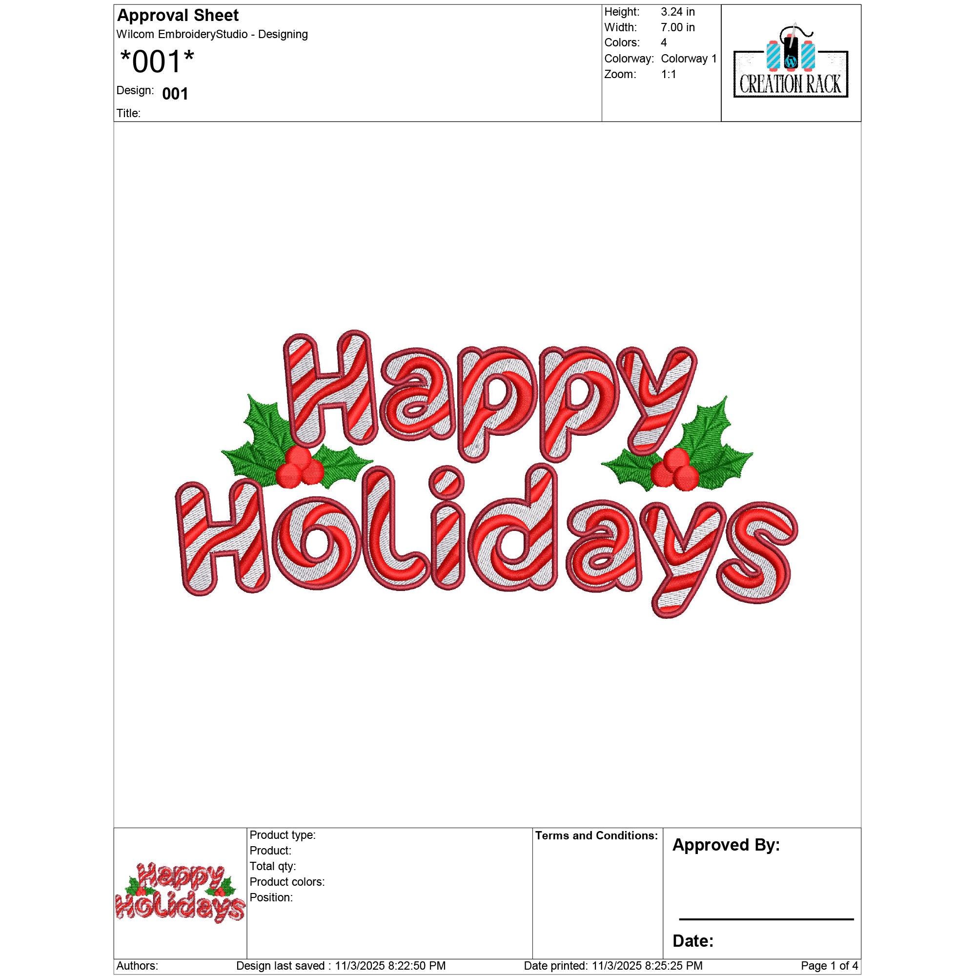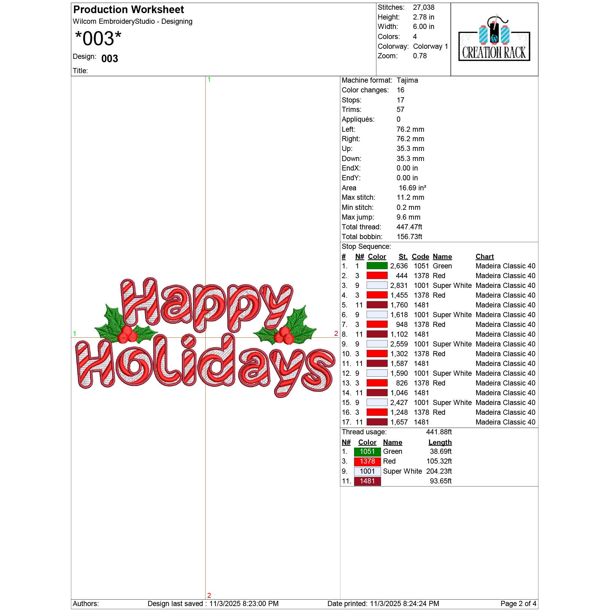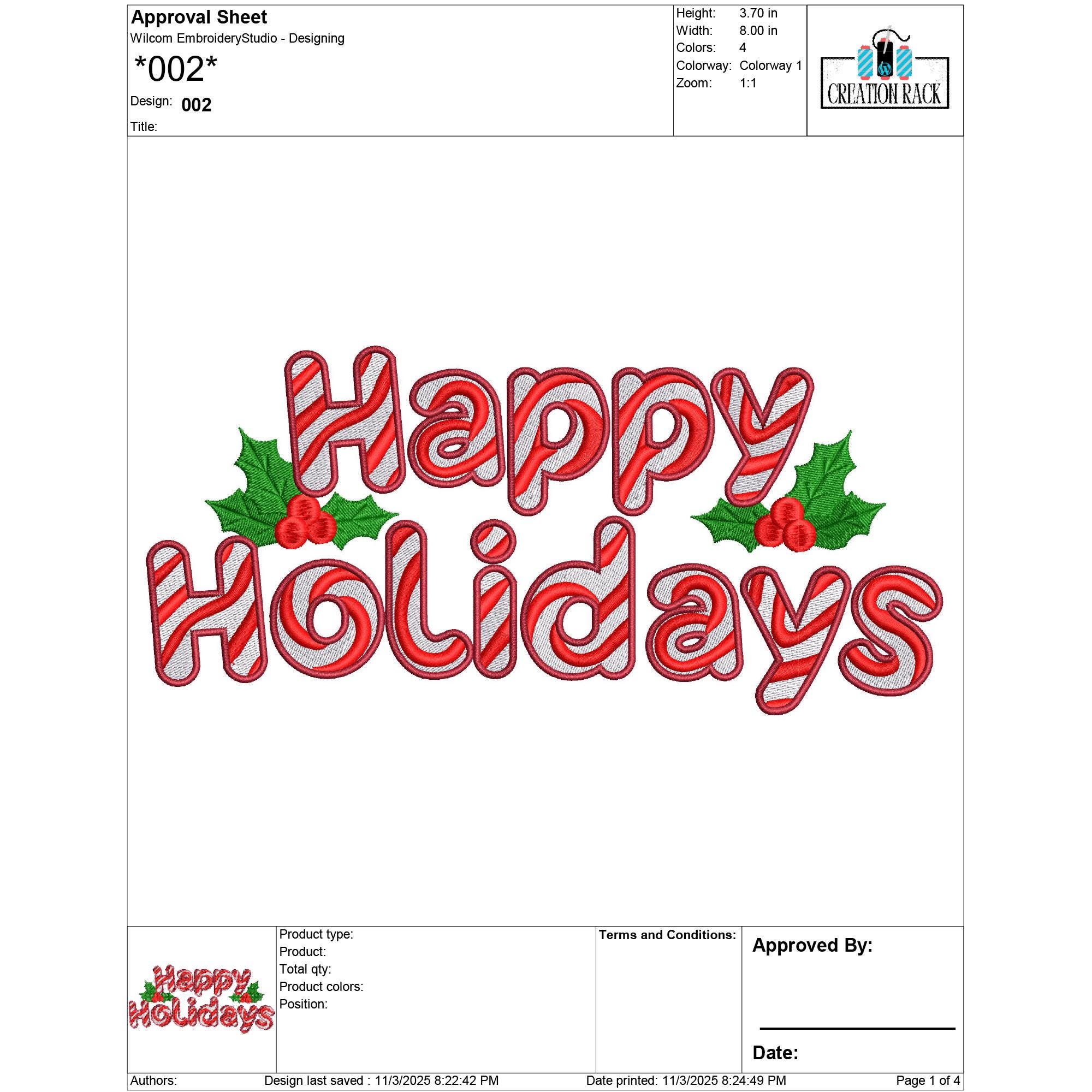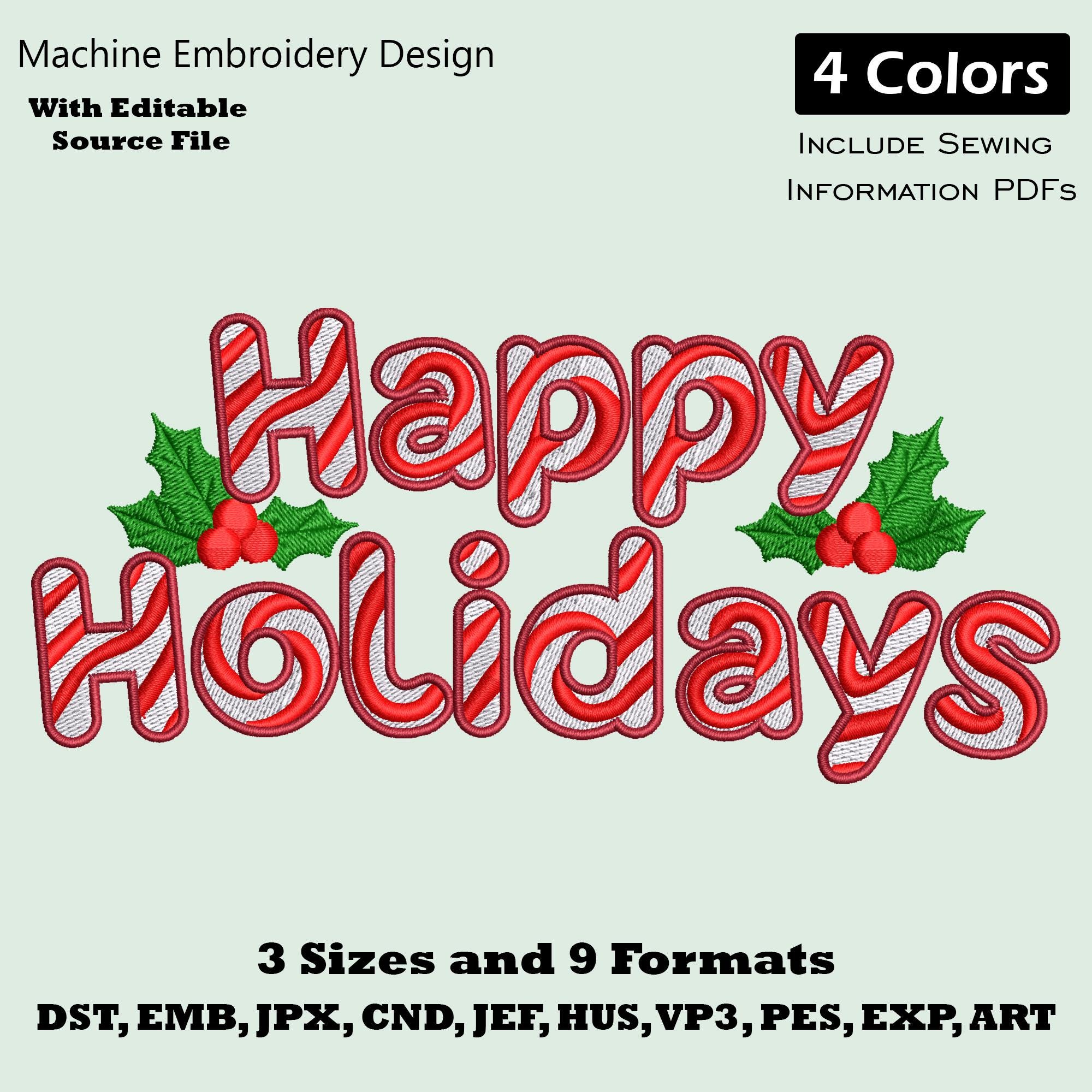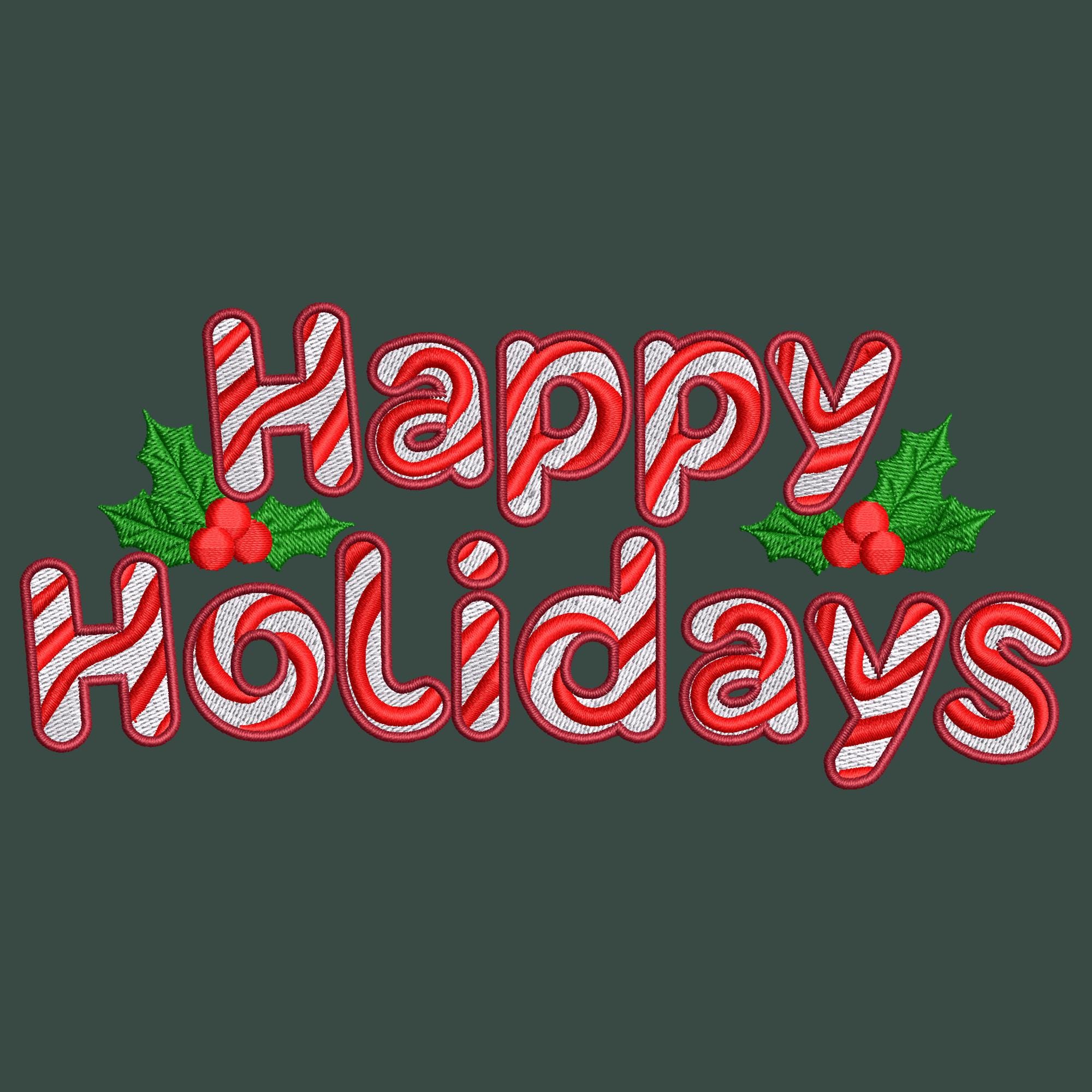 Happy Holidays Candy Cane Embroidery Design: Christmas Machine Embroidery Pattern (PES DST EXP)