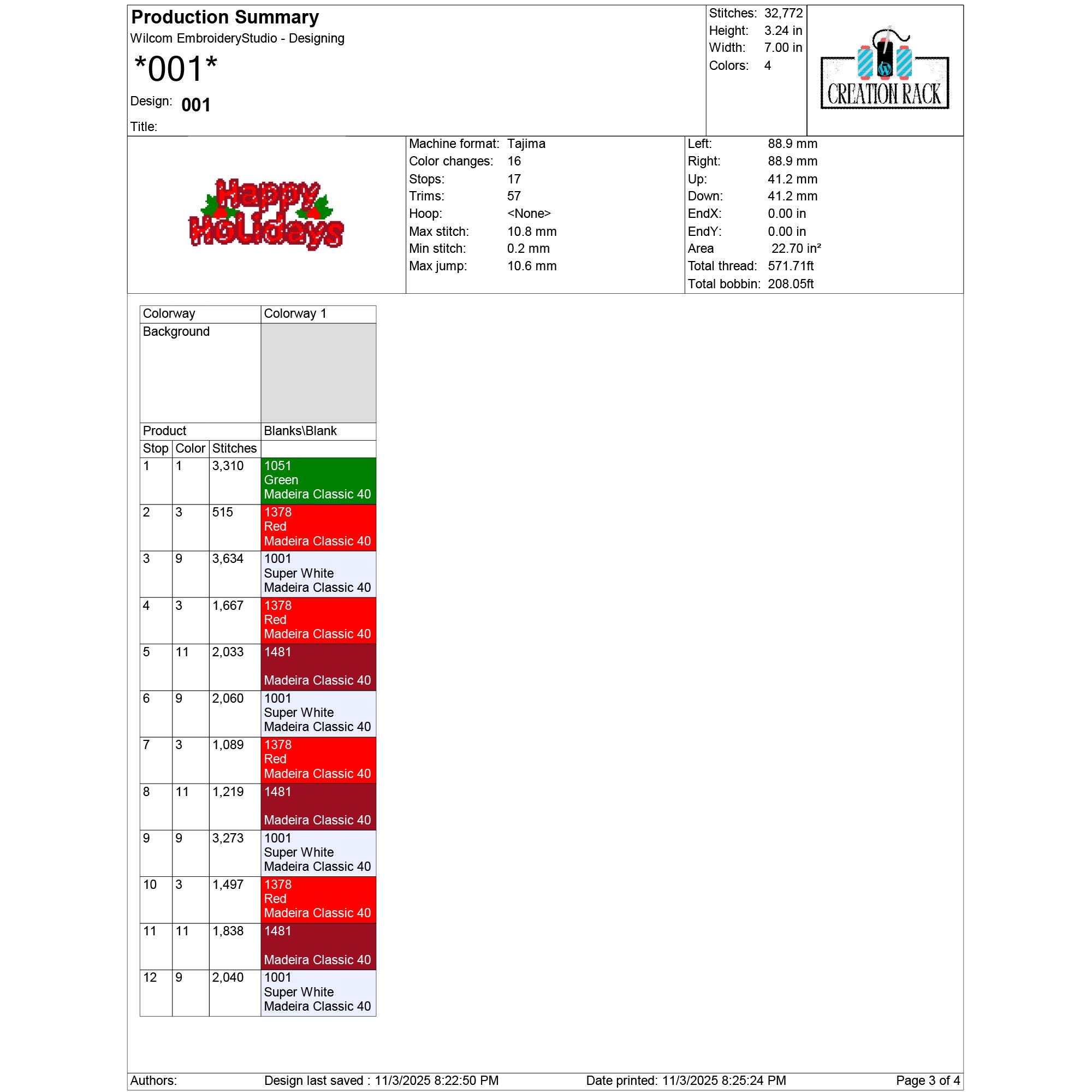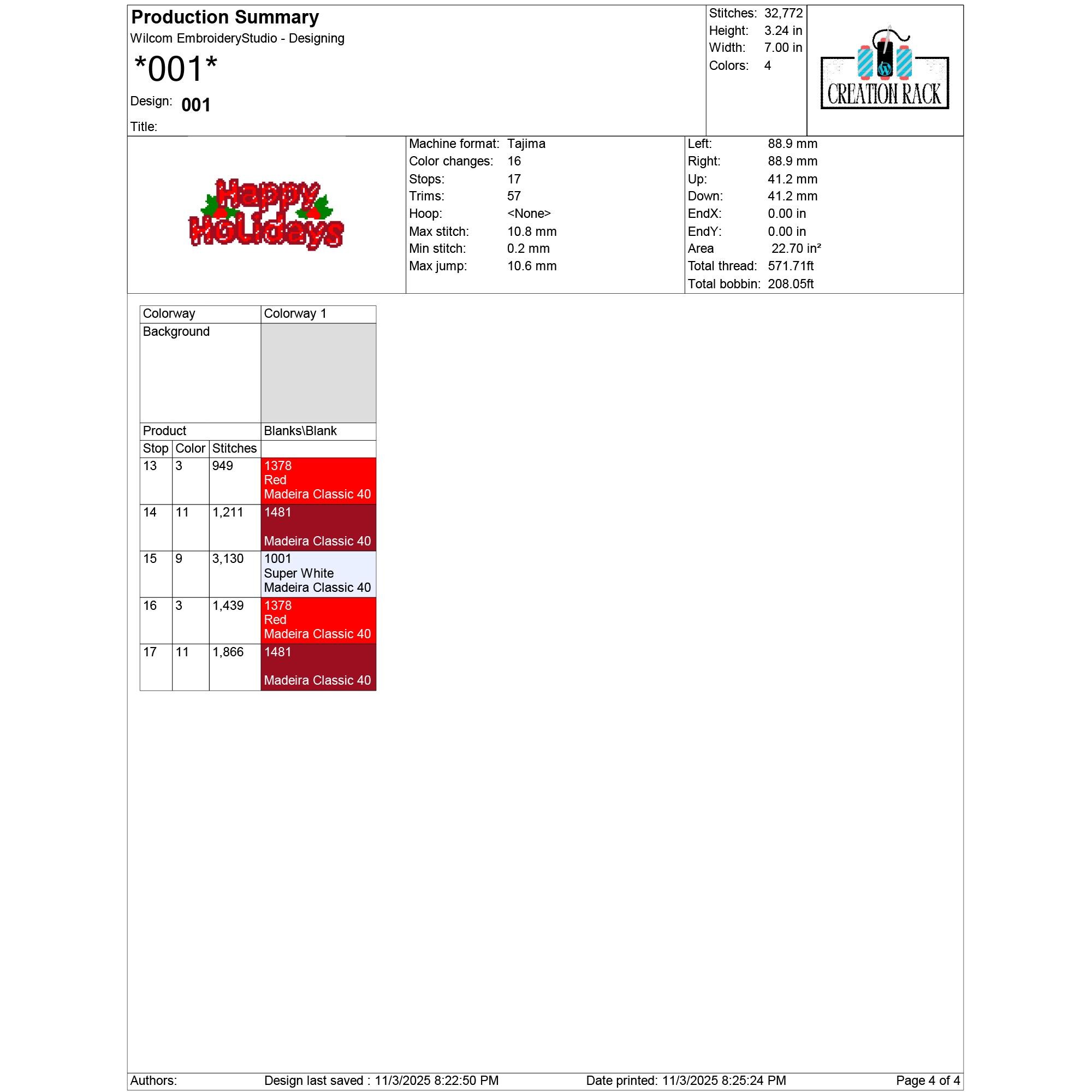 001: 32,772 stitches | 3.24 in (8.23 cm) x 7.00 in (17.78 cm) | 4 colors