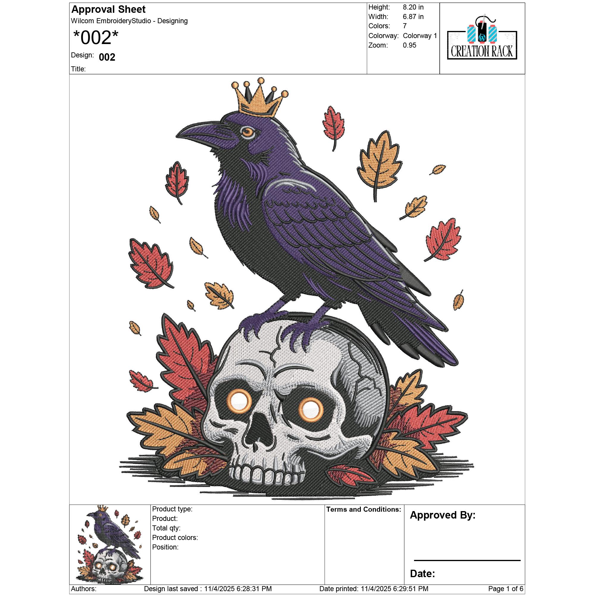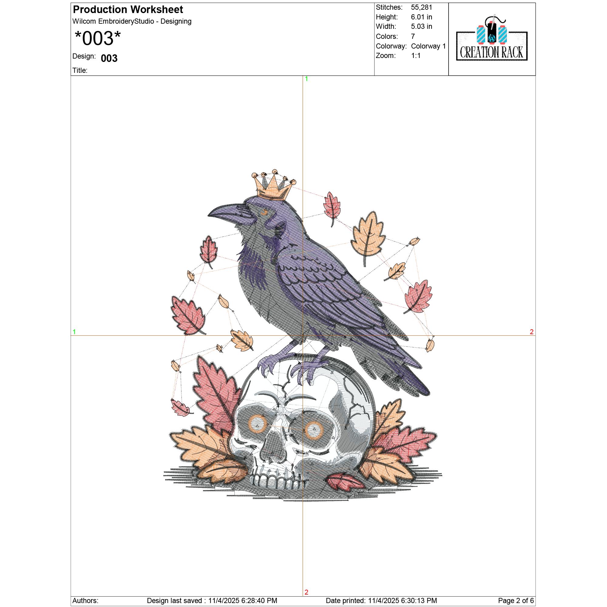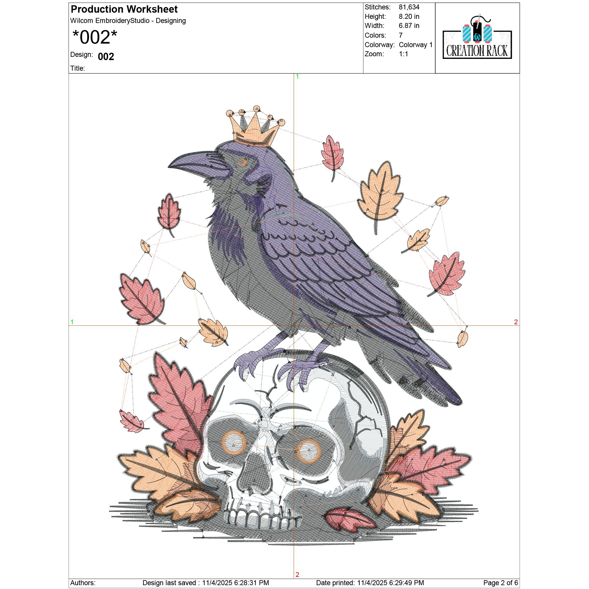 This raven and skull embroidery file is professionally digitized to stitch smoothly with bold detail and clean outlines. A dramatic and haunting addition to your Halloween and gothic embroidery collection.
