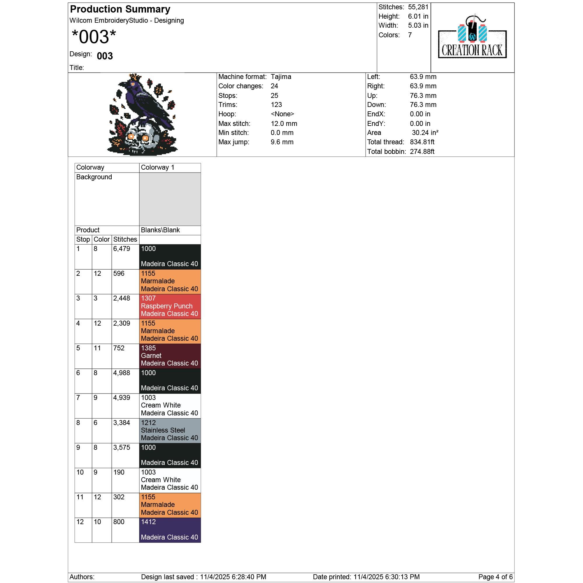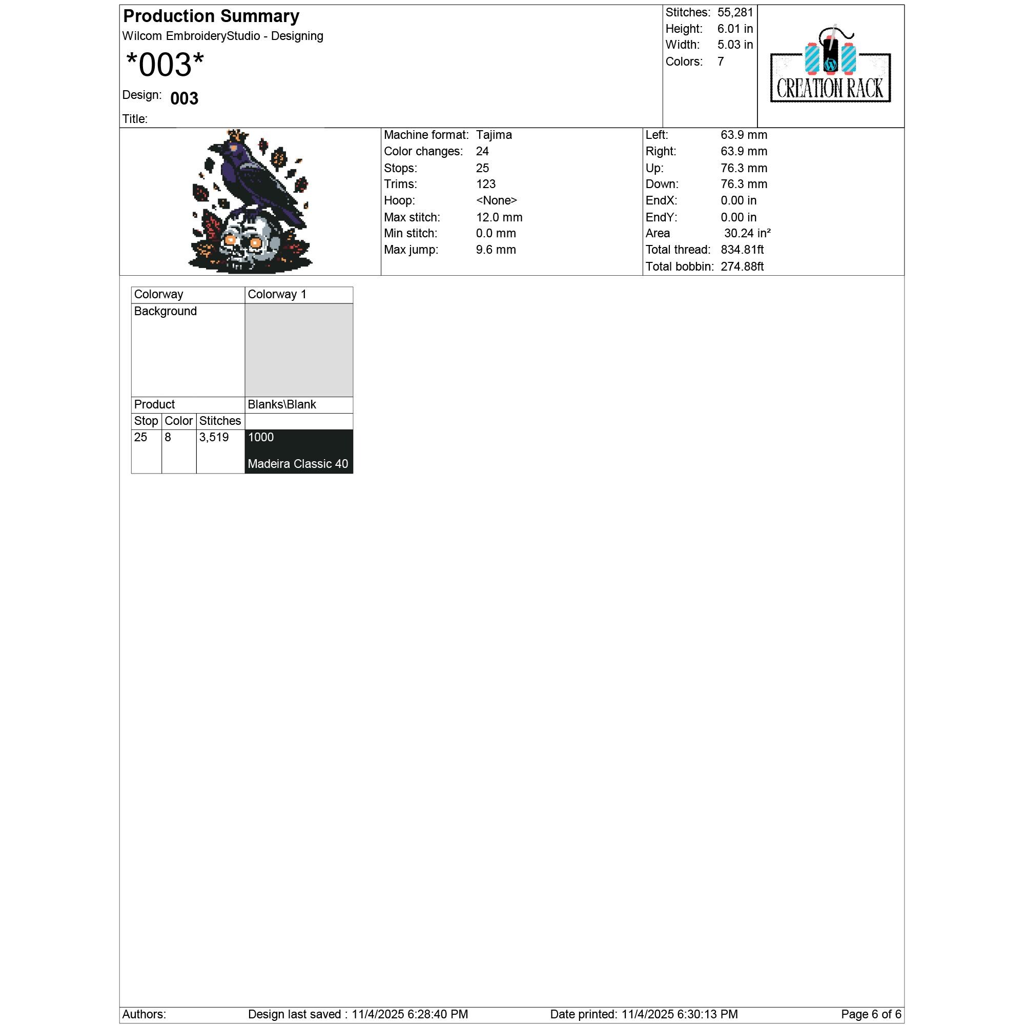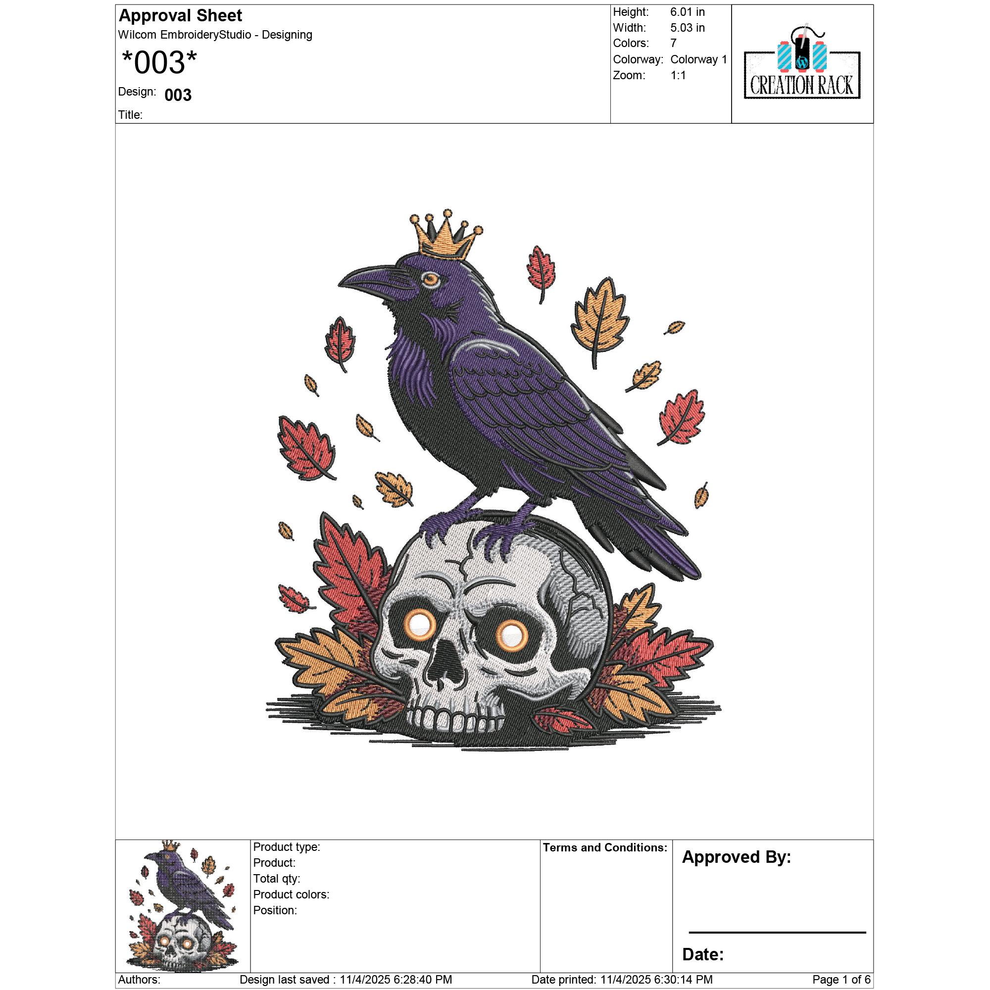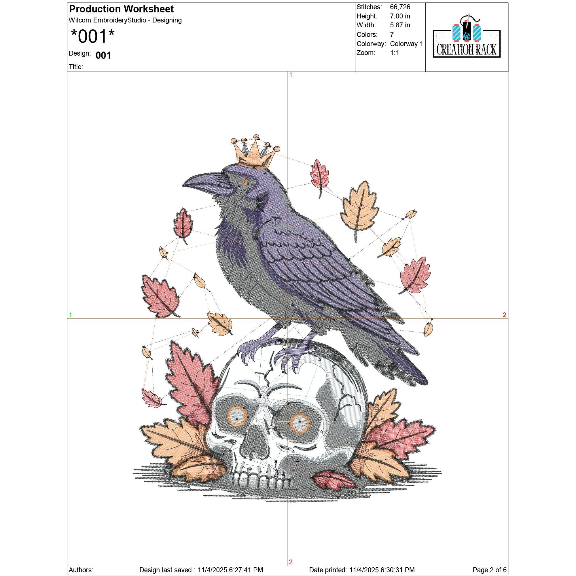 This raven and skull embroidery file is professionally digitized to stitch smoothly with bold detail and clean outlines. A dramatic and haunting addition to your Halloween and gothic embroidery collection.