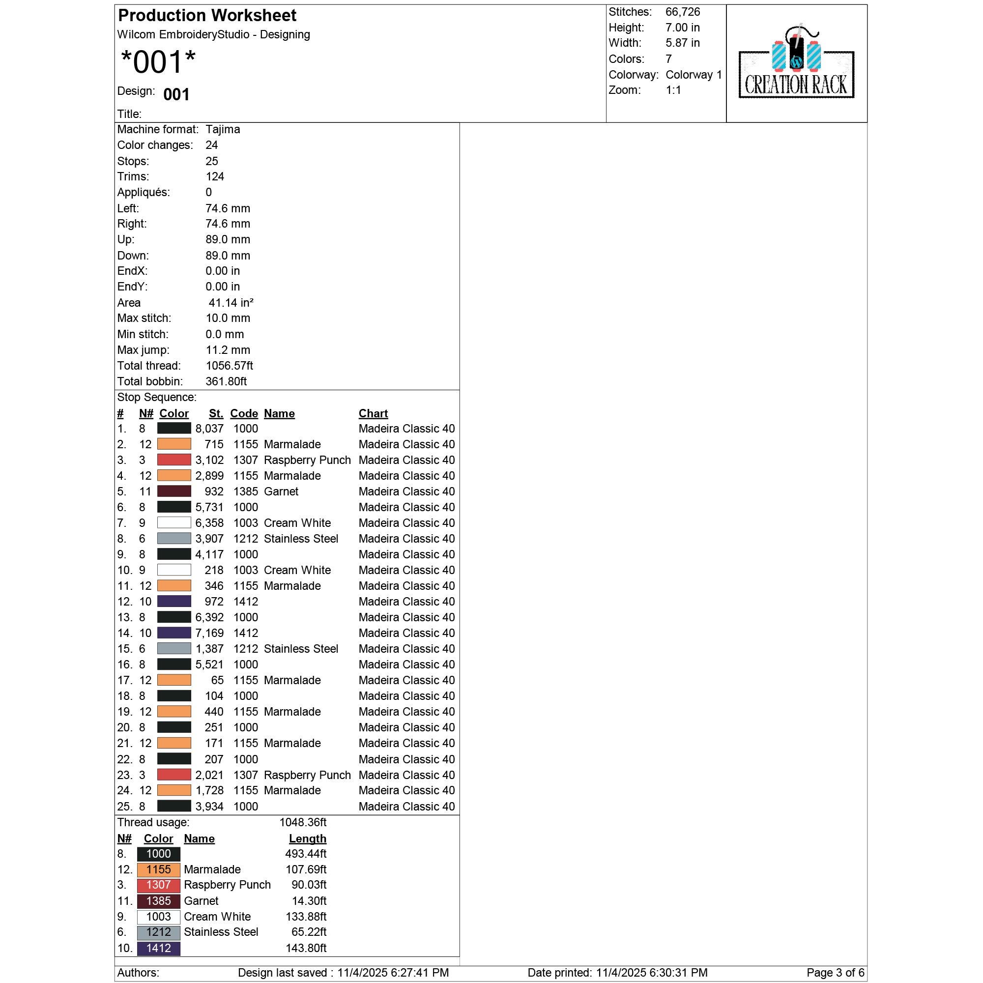 001: 66,726 stitches | 7.00 in (17.78 cm) x 5.87 in (14.91 cm) | 7 colors