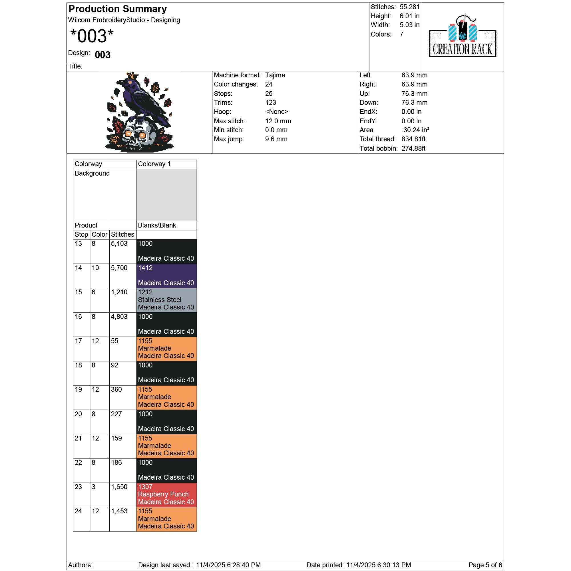 003: 55,281 stitches | 6.01 in (15.27 cm) x 5.03 in (12.78 cm) | 7 colors