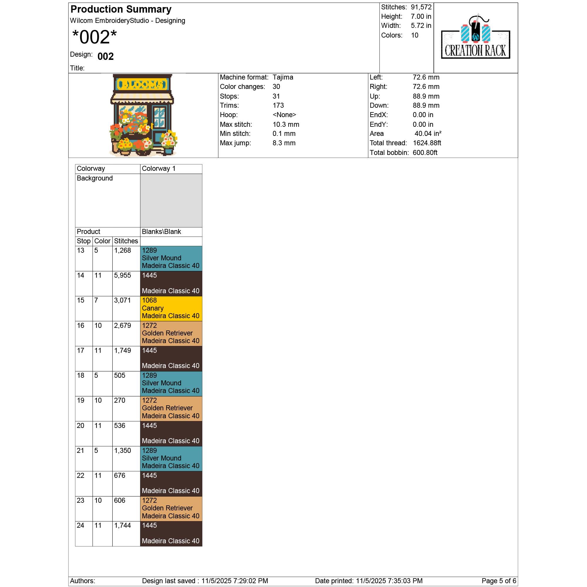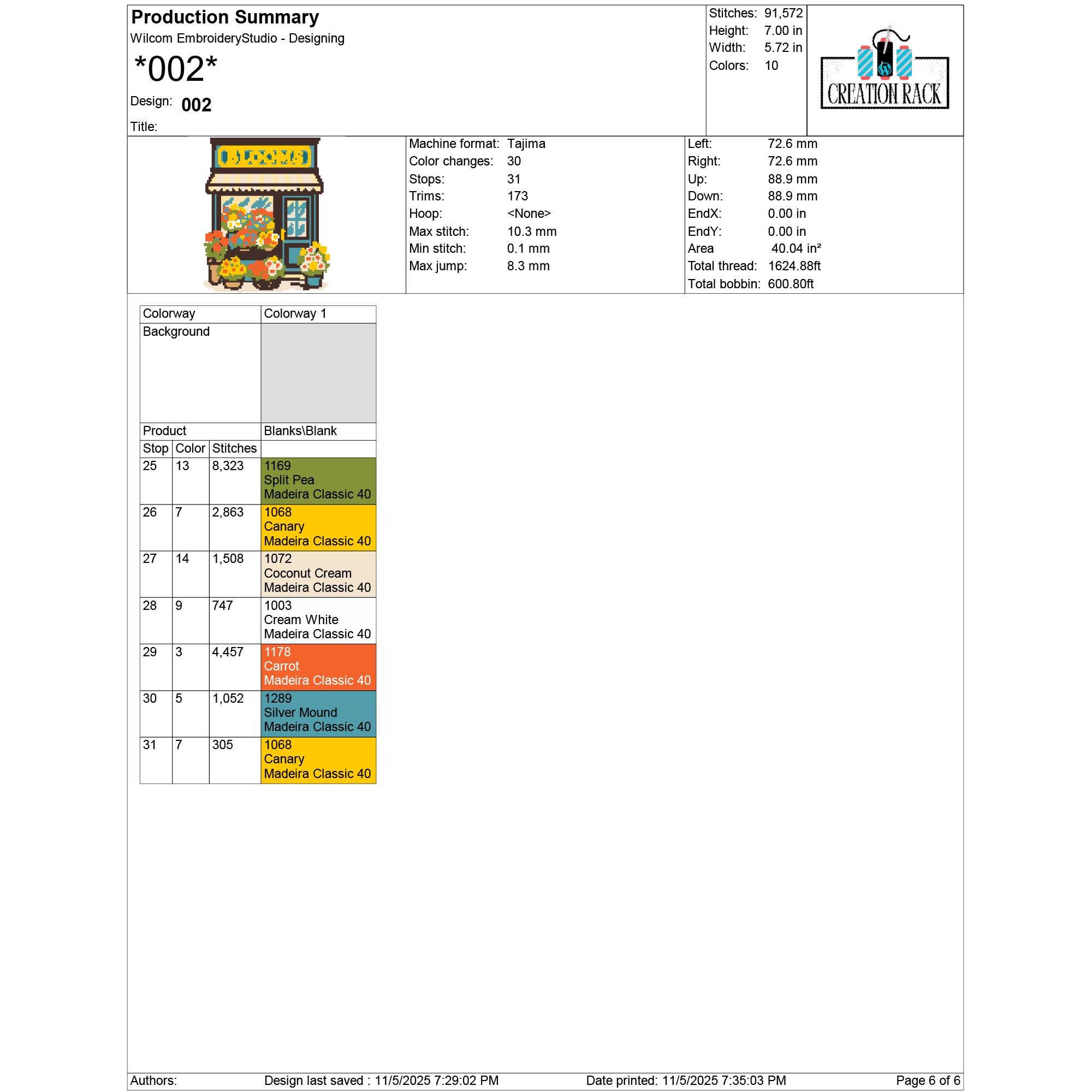 002: 91,572 stitches | 7.00 in (17.8 cm) x 5.72 in (14.5 cm) | 10 colors