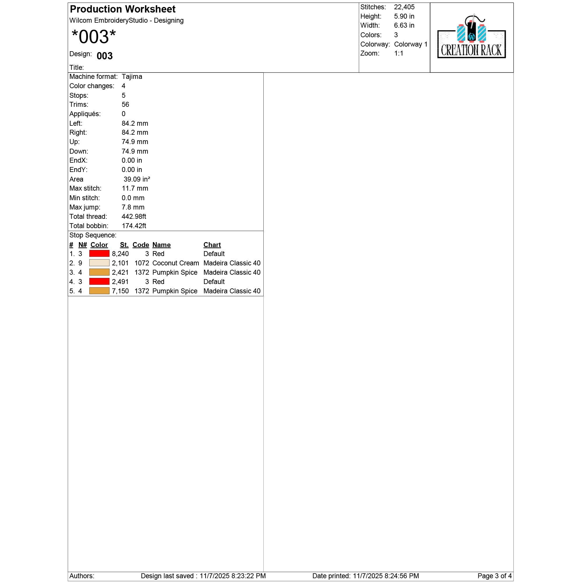 003: 22,405 stitches | 5.90 in (15.0 cm) x 6.63 in (16.8 cm) | 3 colors