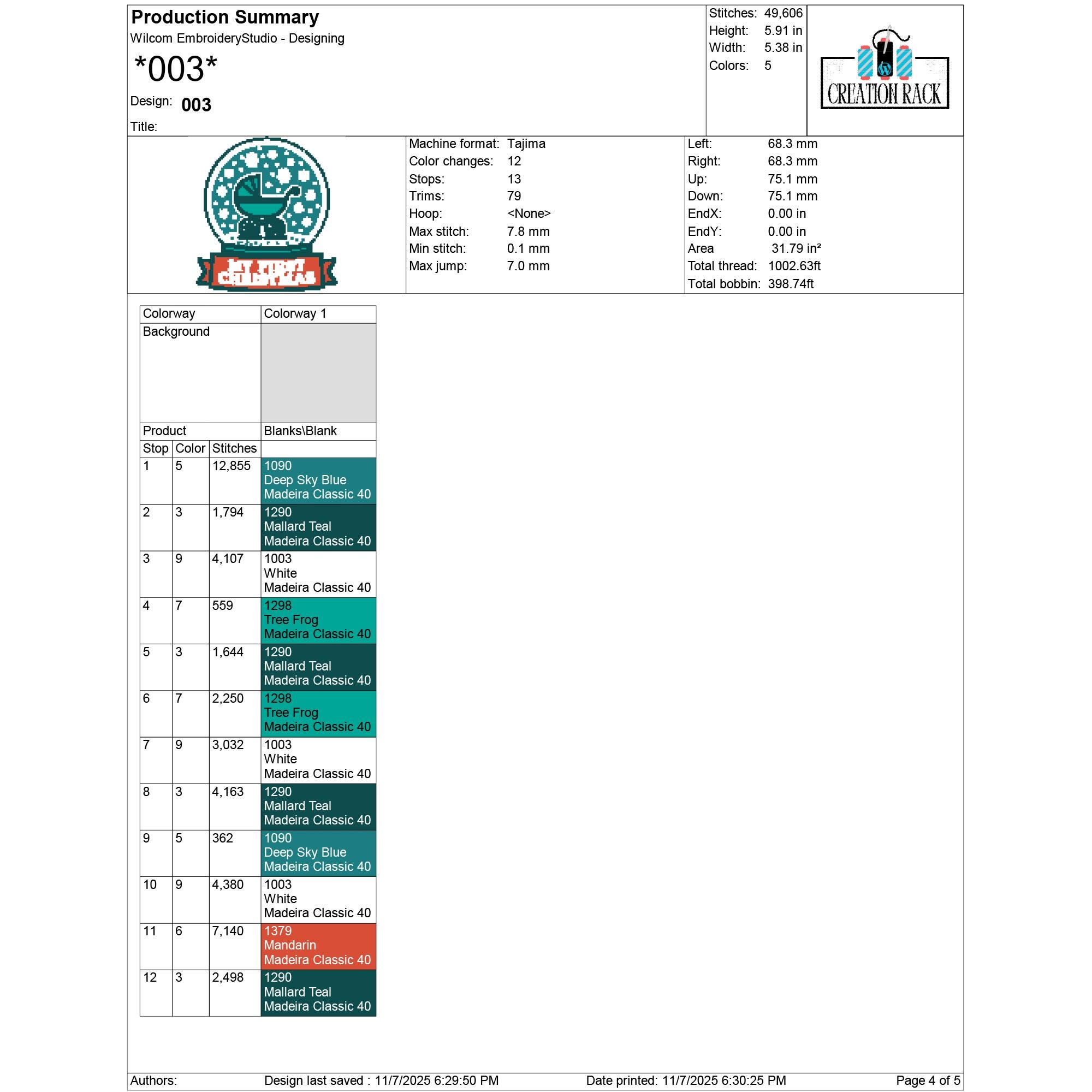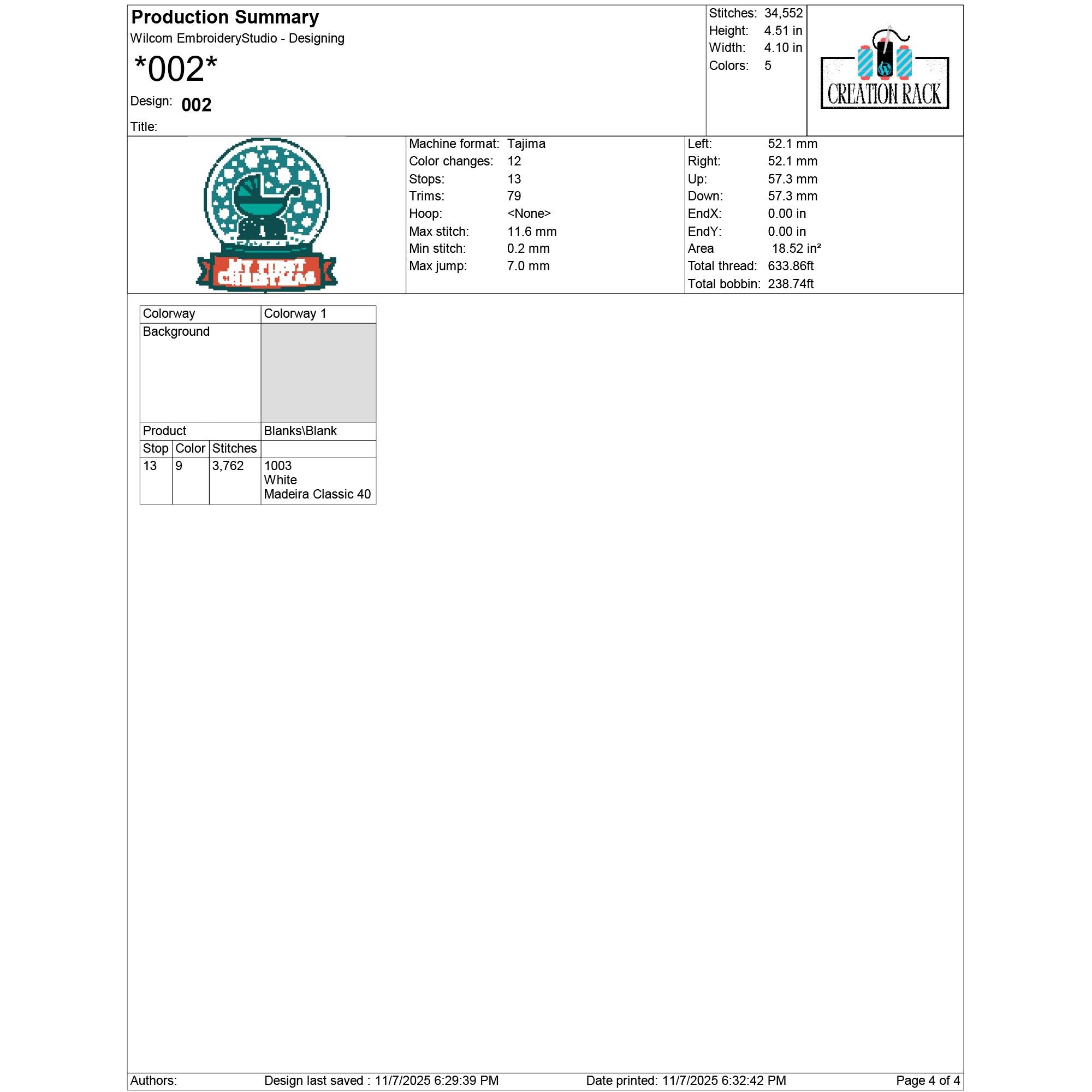 002: 34,552 stitches | 4.51 in (11.5 cm) x 4.10 in (10.4 cm) | 5 colors