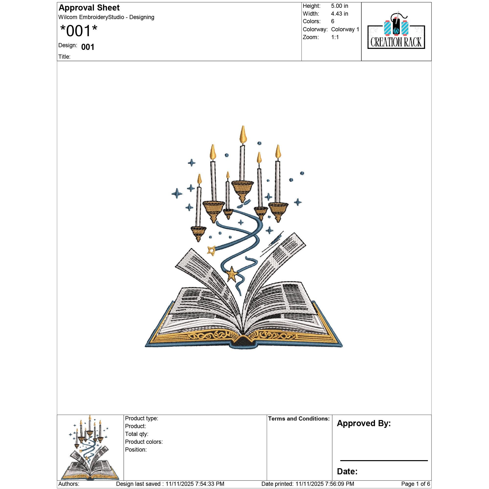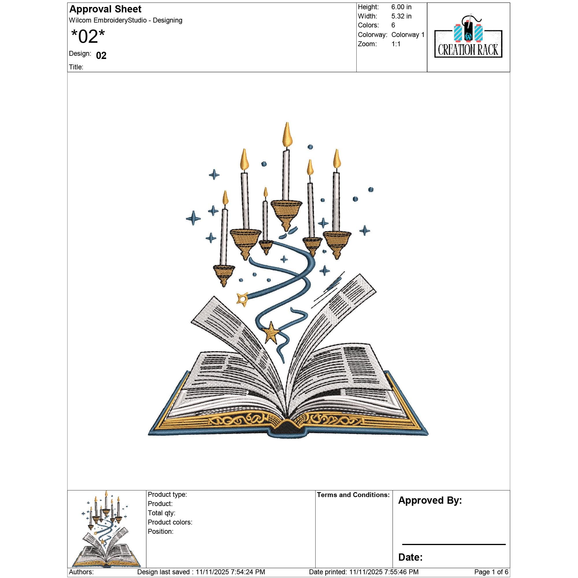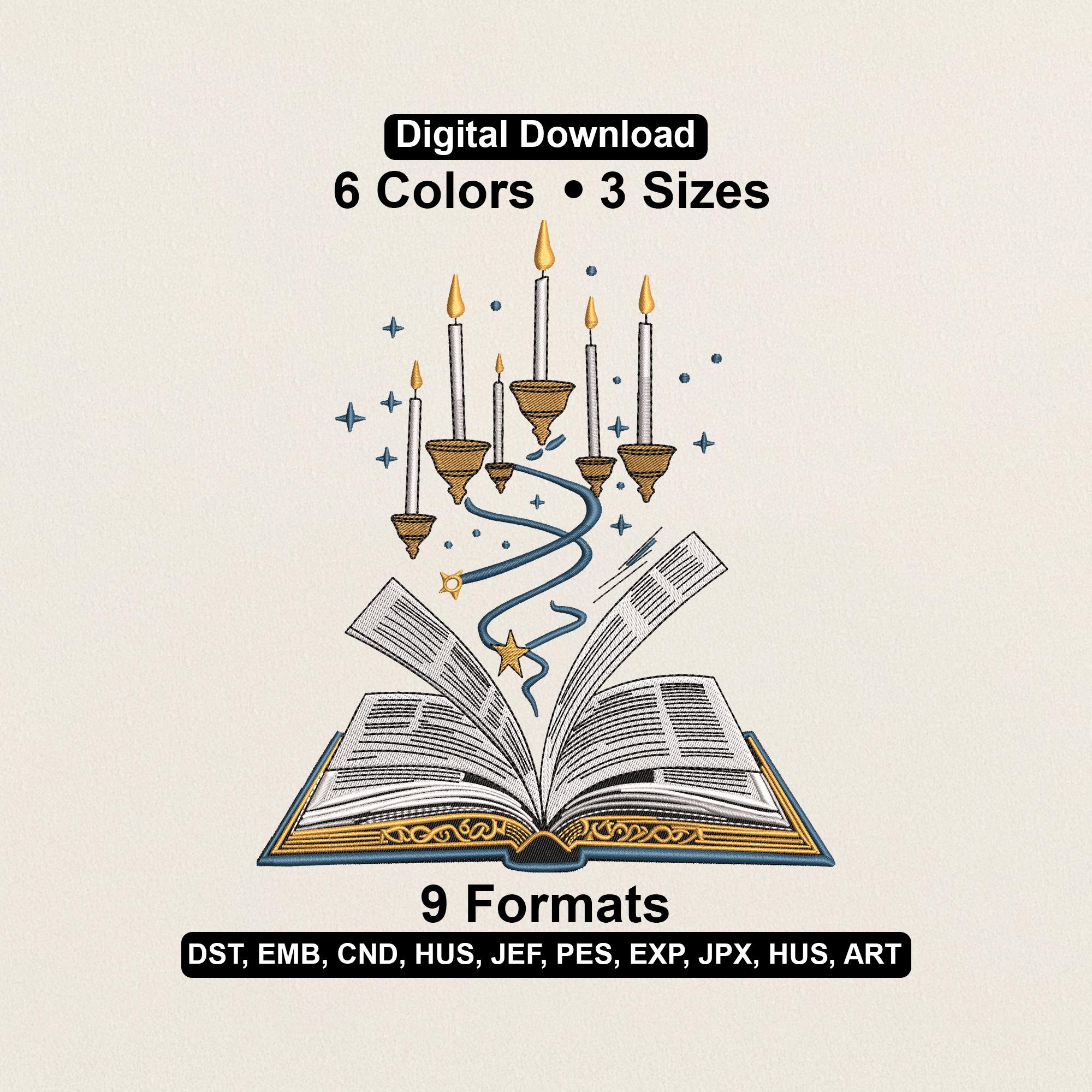 This magic spell book embroidery file is professionally digitized for clean stitching and detailed results — ideal for adding a mystical flair to your embroidery creations.