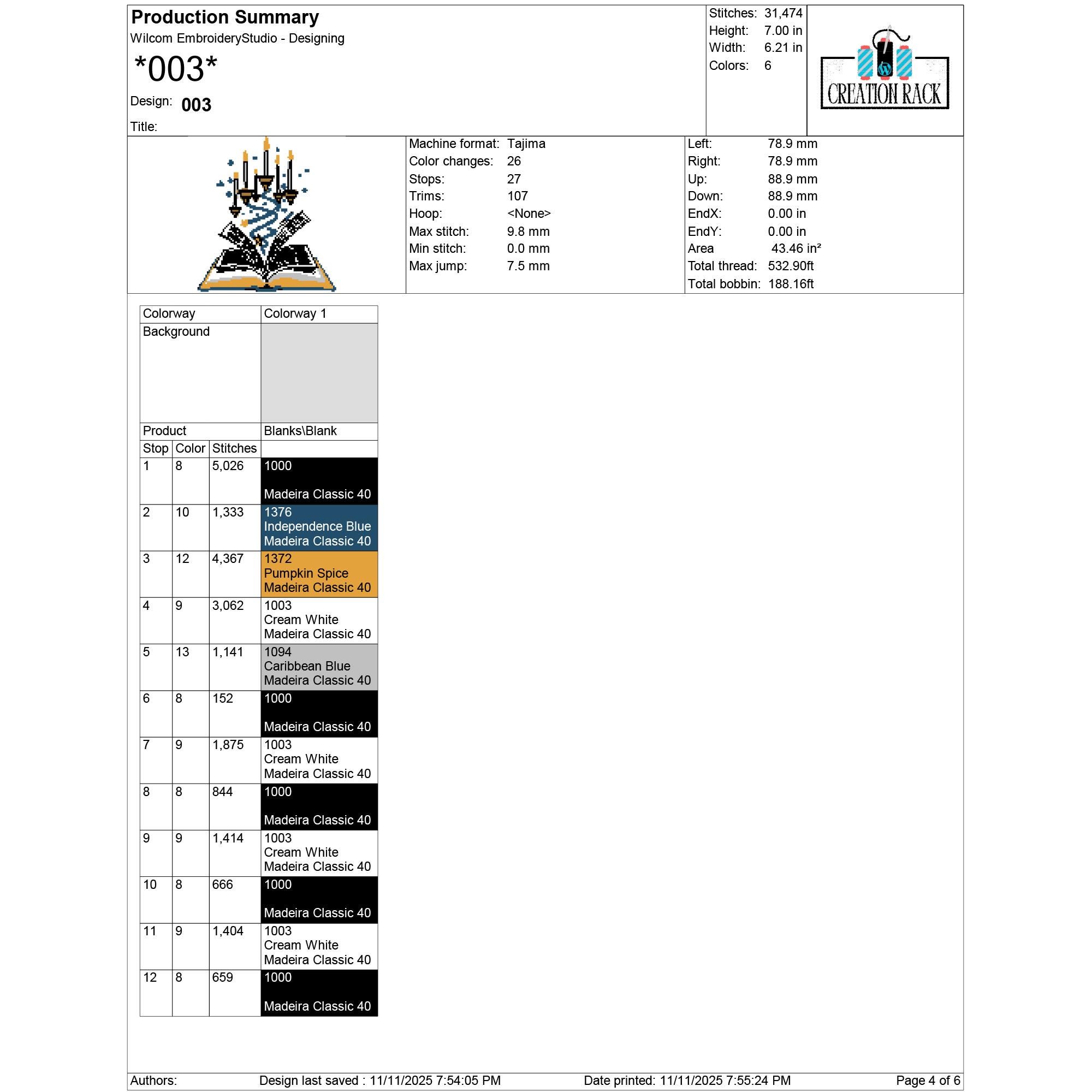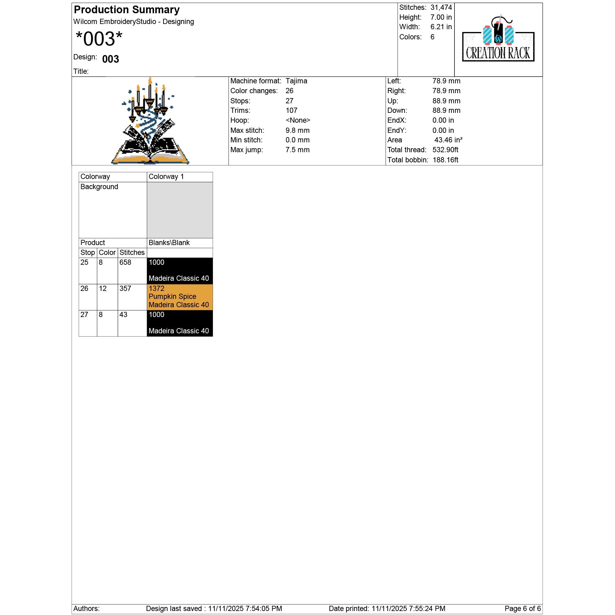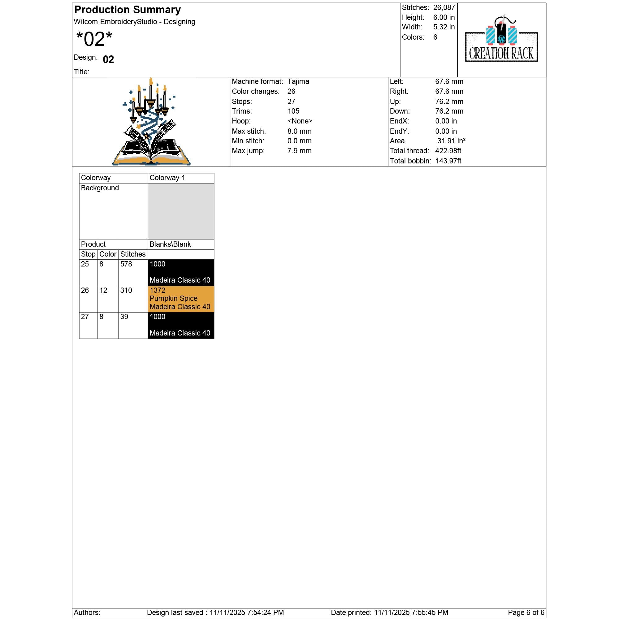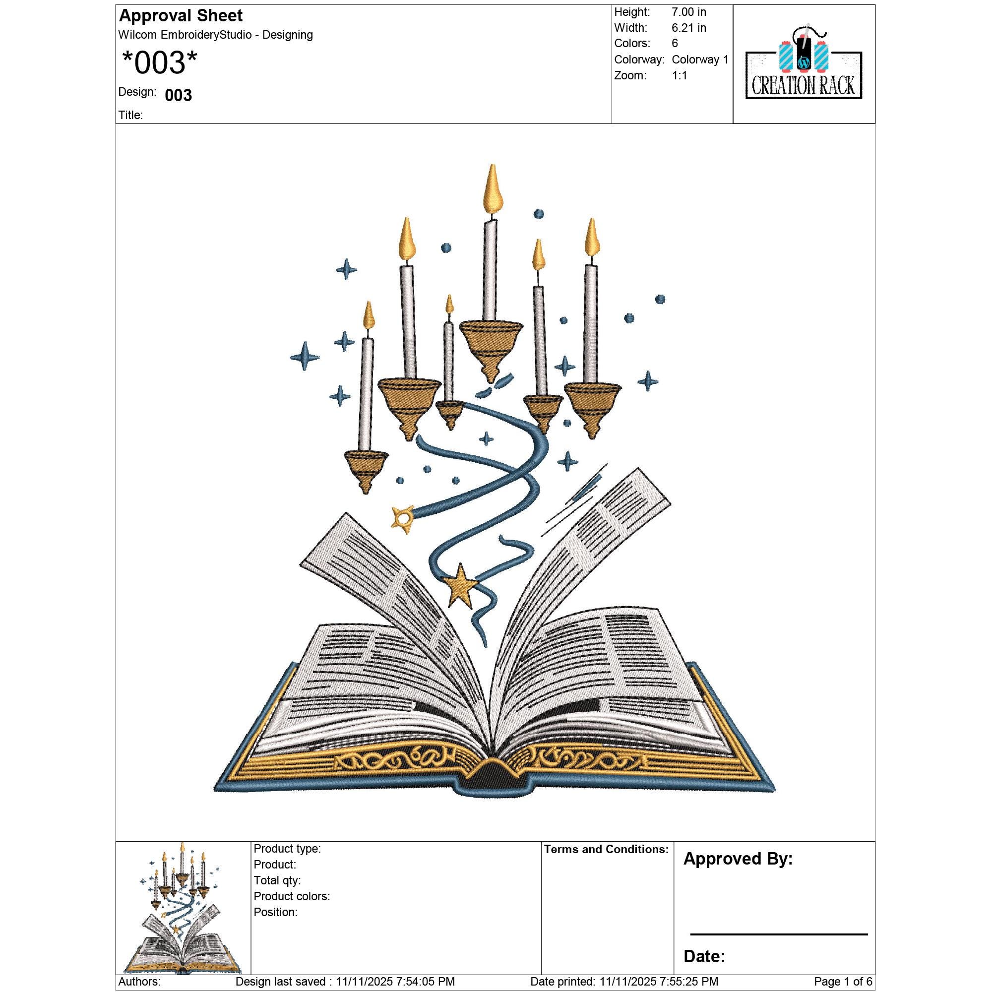 This magic spell book embroidery file is professionally digitized for clean stitching and detailed results — ideal for adding a mystical flair to your embroidery creations.