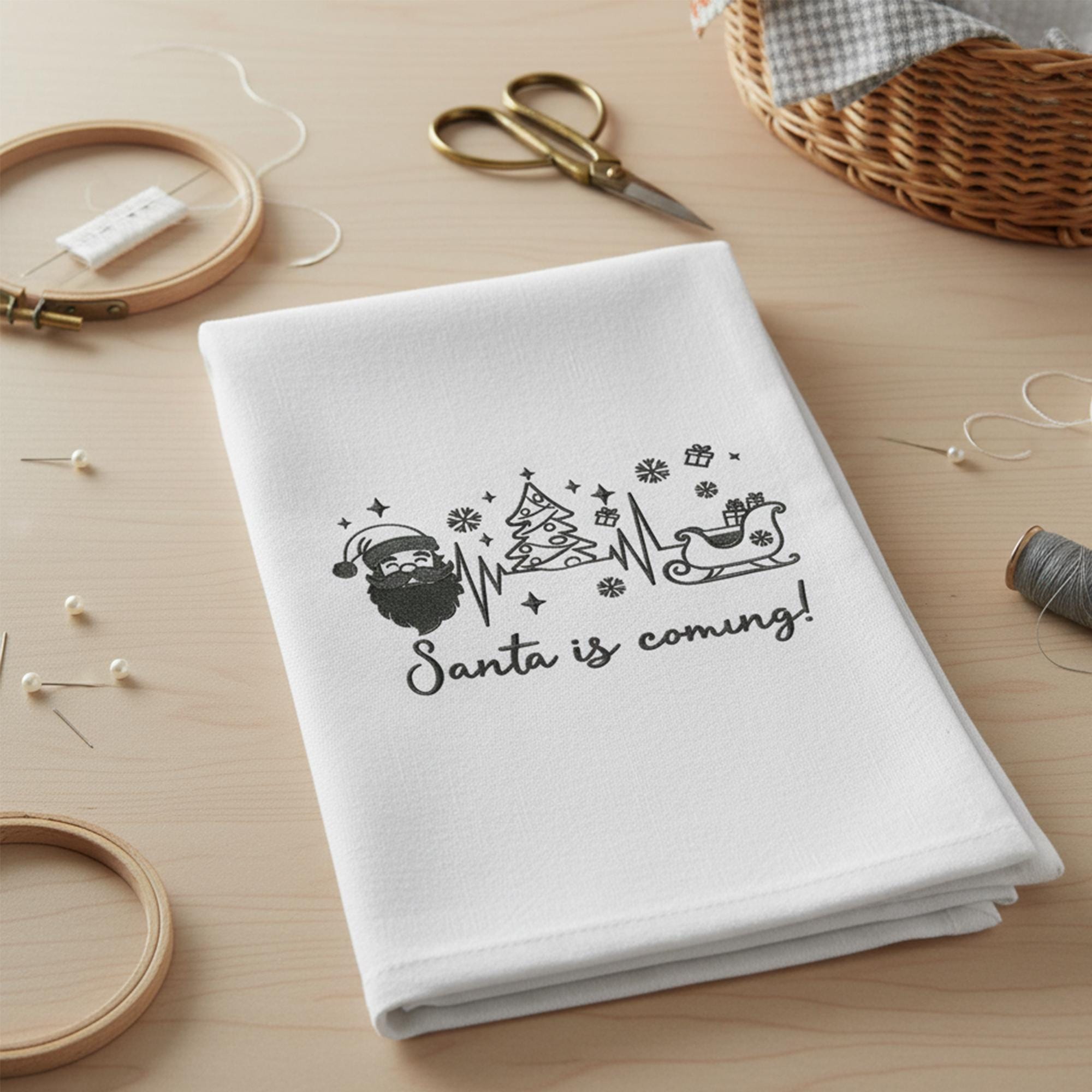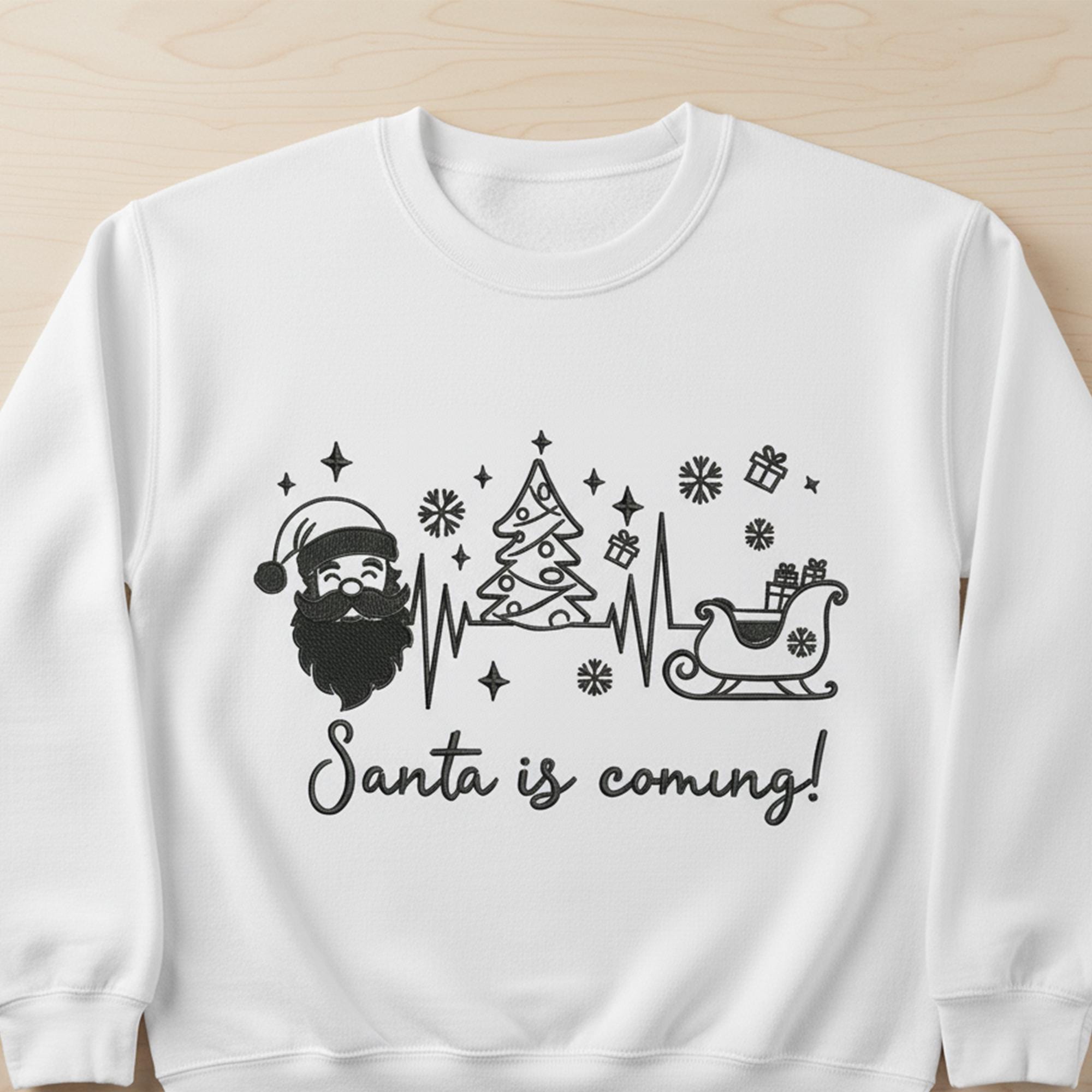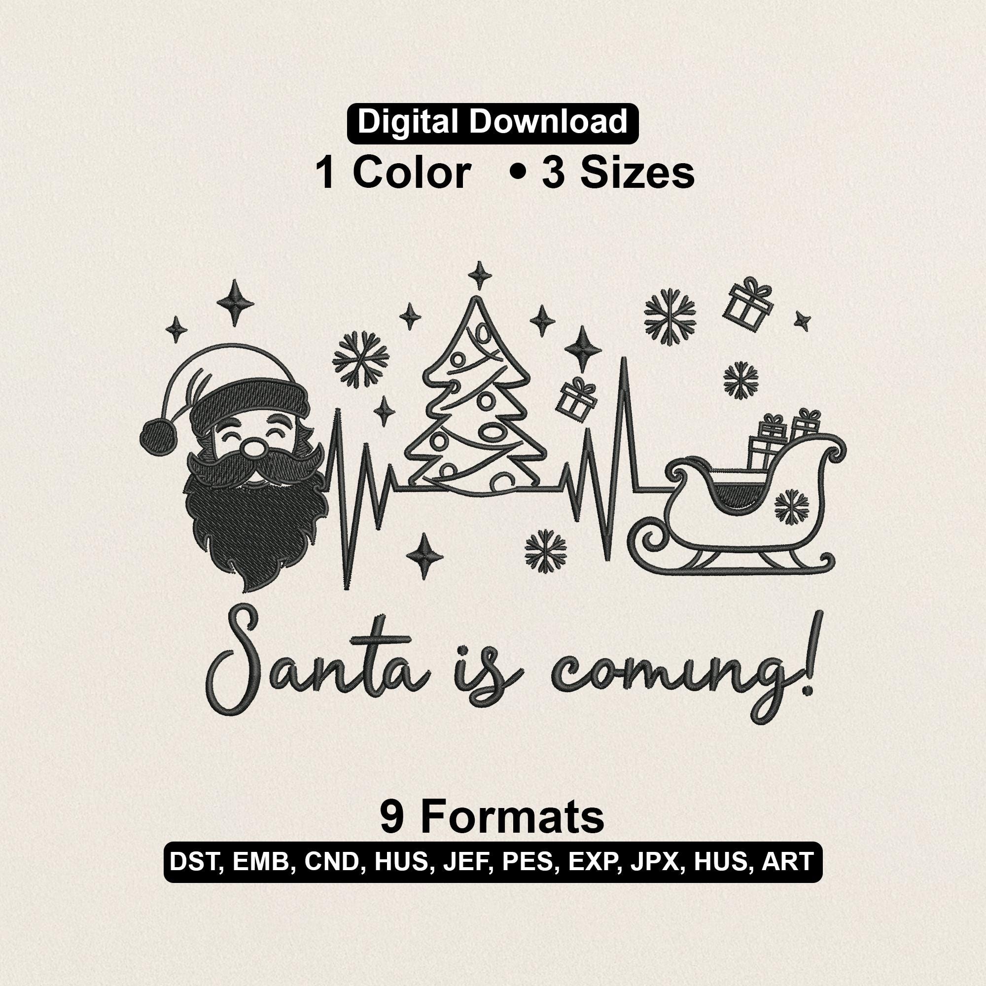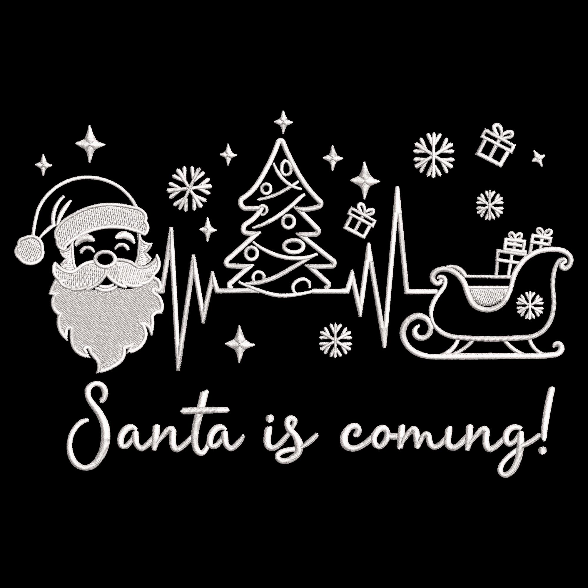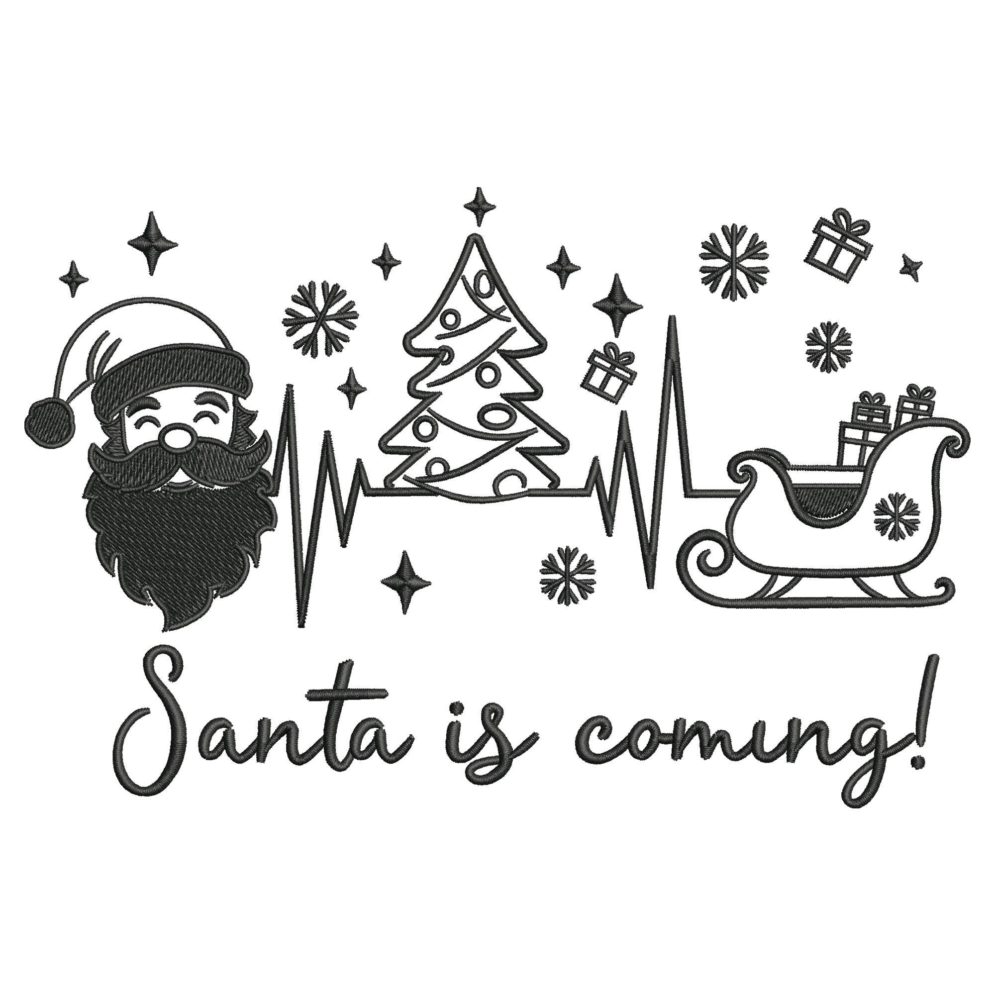 This Santa sleigh and tree outline embroidery file is professionally digitized for smooth stitching and clean results in every size. A perfect addition to your holiday embroidery collection.