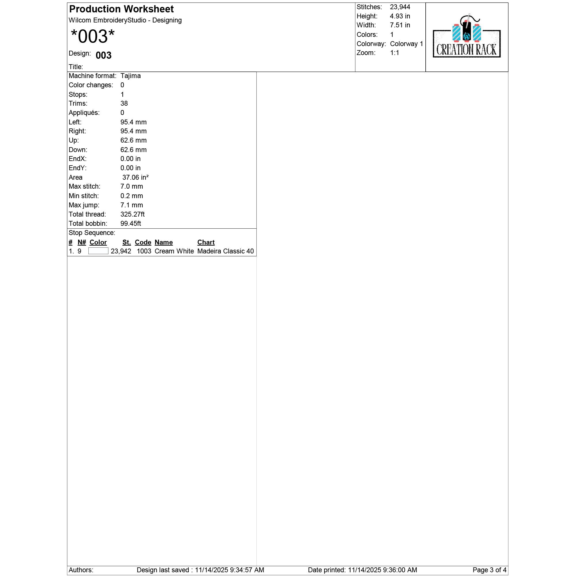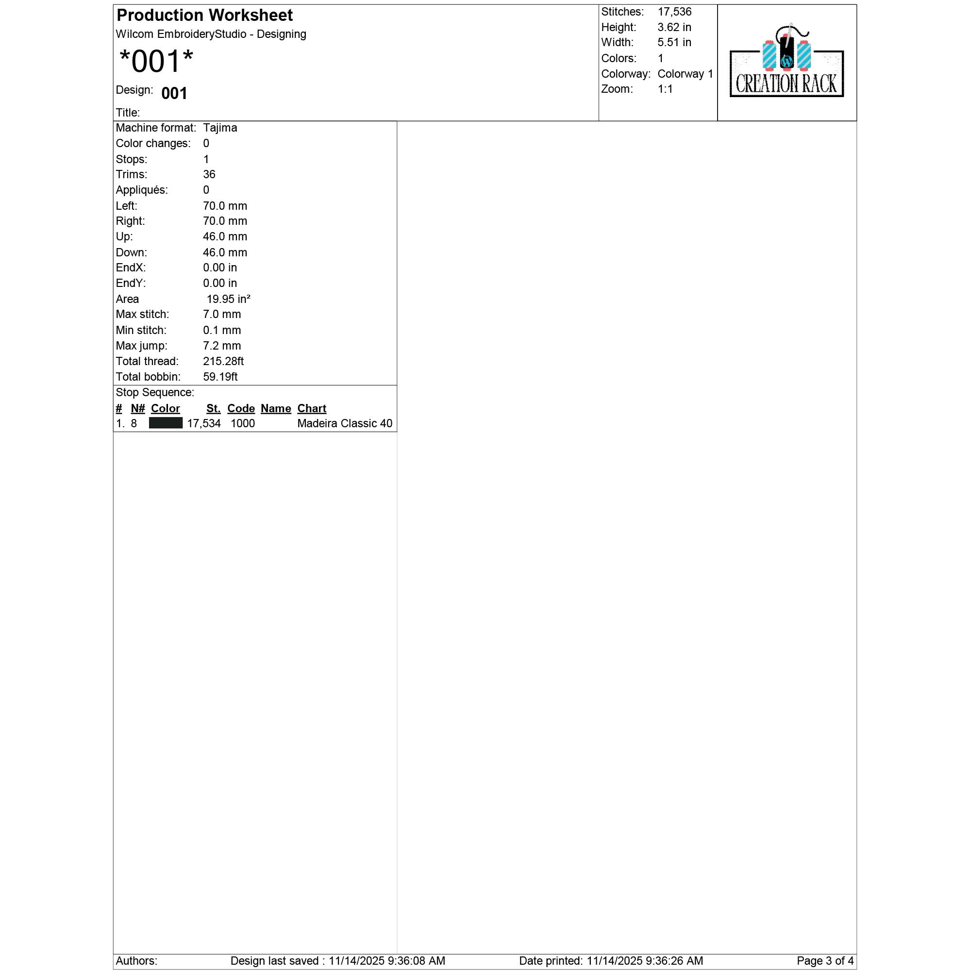 002: 20,662 stitches | 4.28 in (10.8 cm) × 6.51 in (16.5 cm) | 1 color