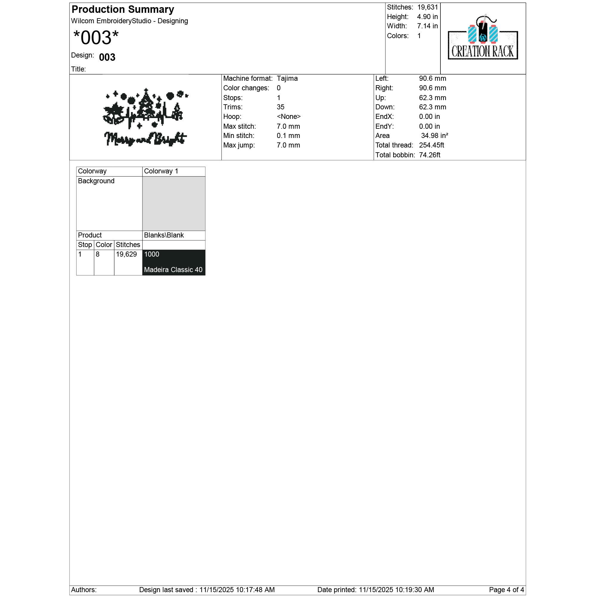 003: 19,631 stitches | 4.90 in × 7.14 in | 1 color