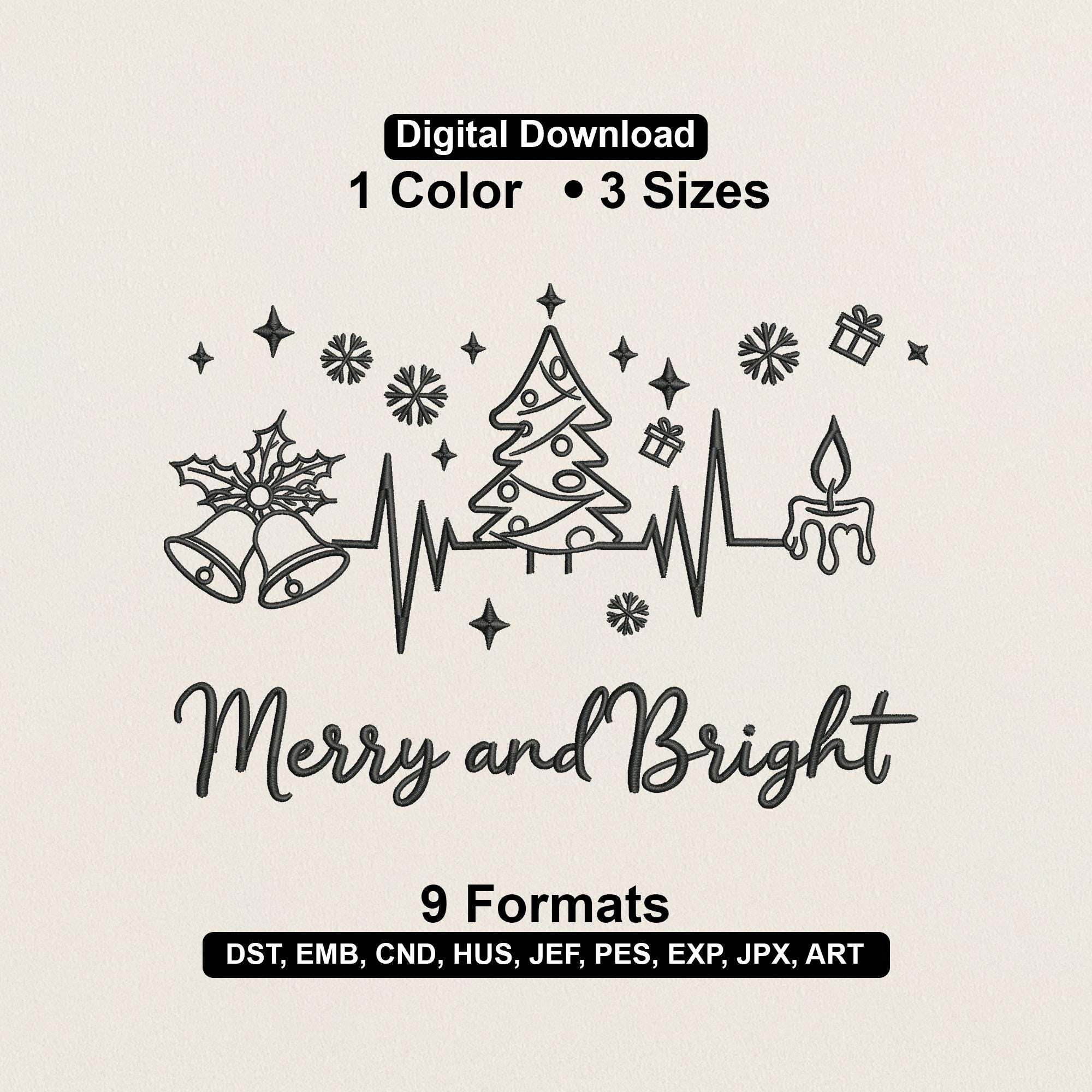 This Christmas bell candle and tree outline embroidery file is professionally digitized for smooth stitching and clean results in every size. A beautiful addition to your Christmas embroidery collection.