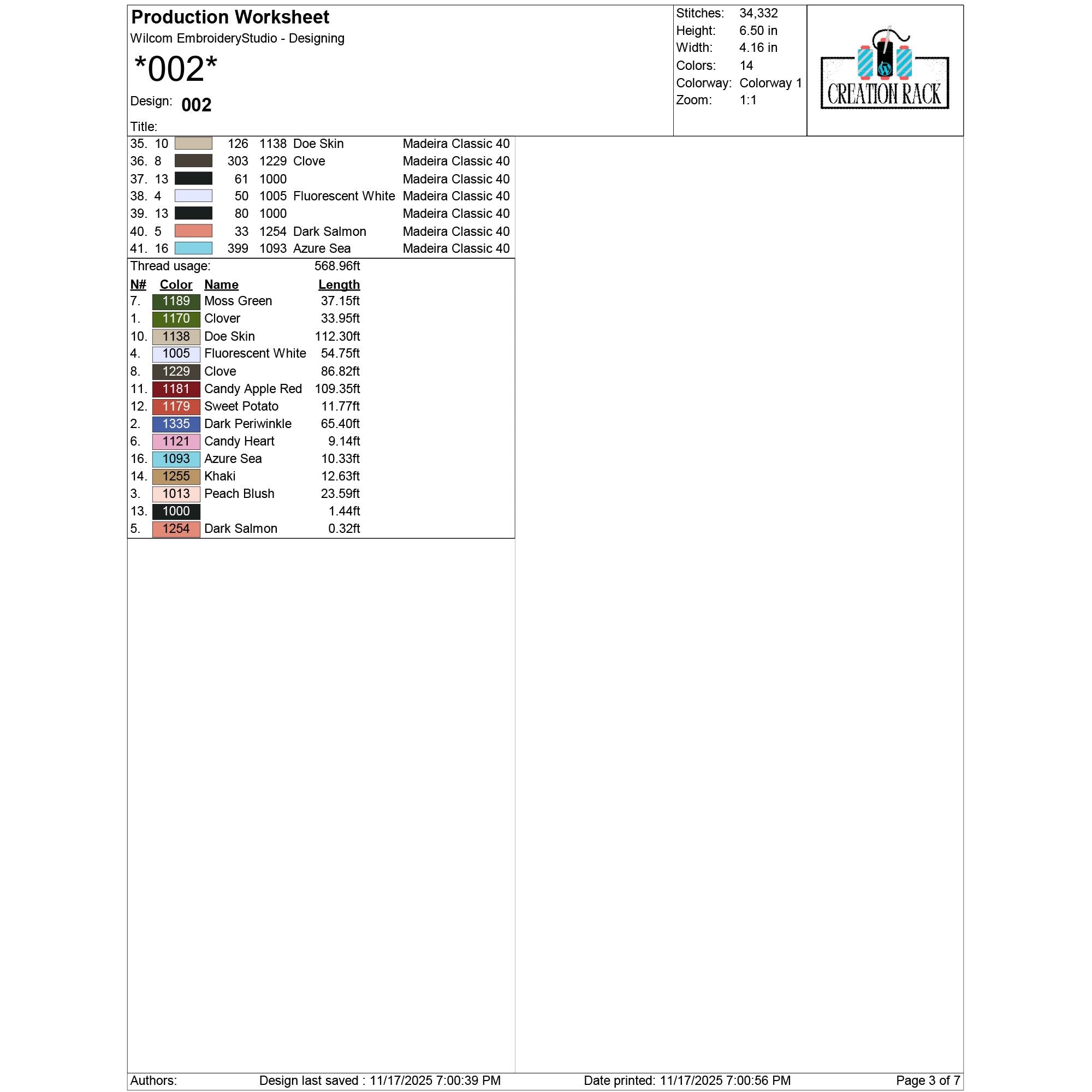 002: 34,332 stitches | 6.50 in × 4.16 in | 14 colors