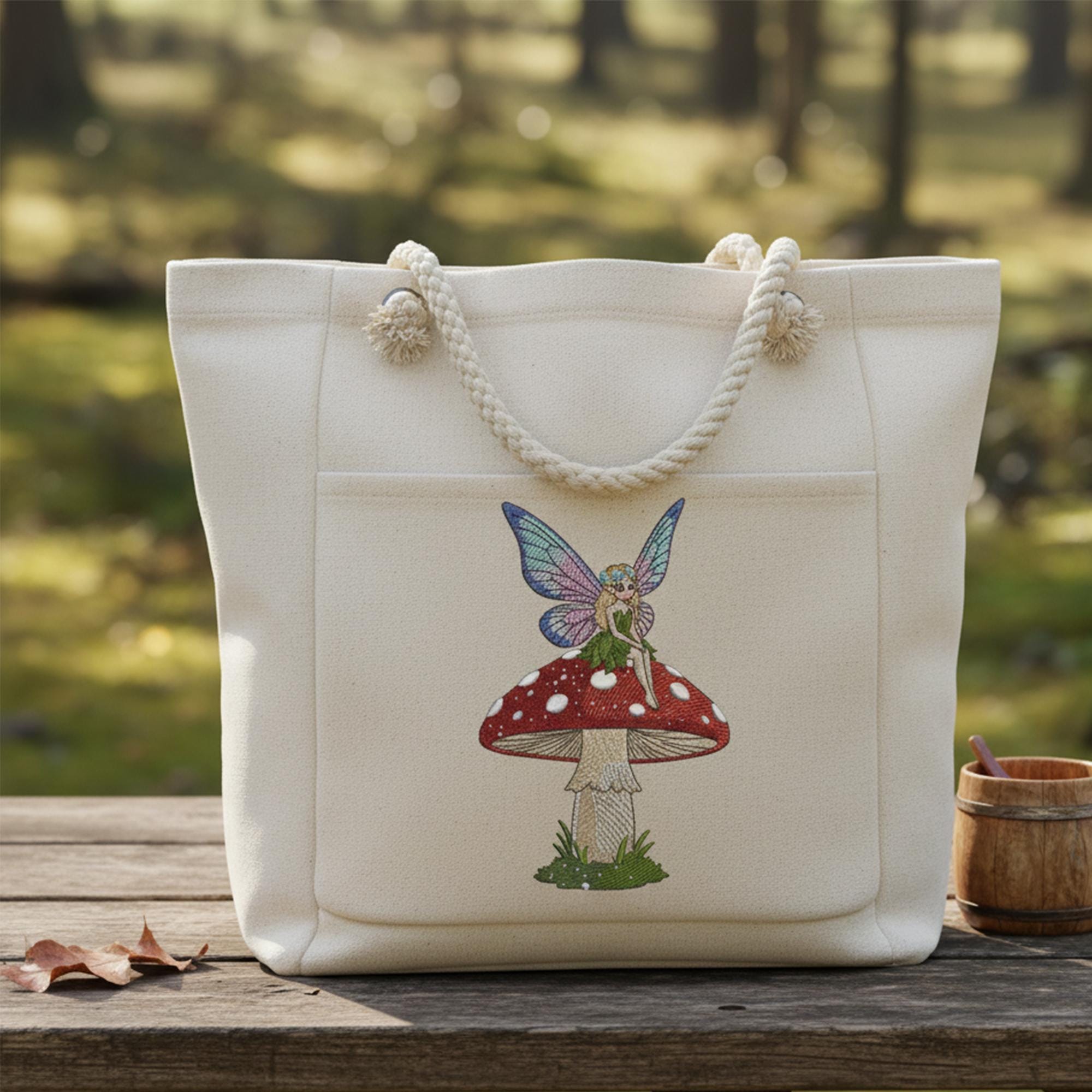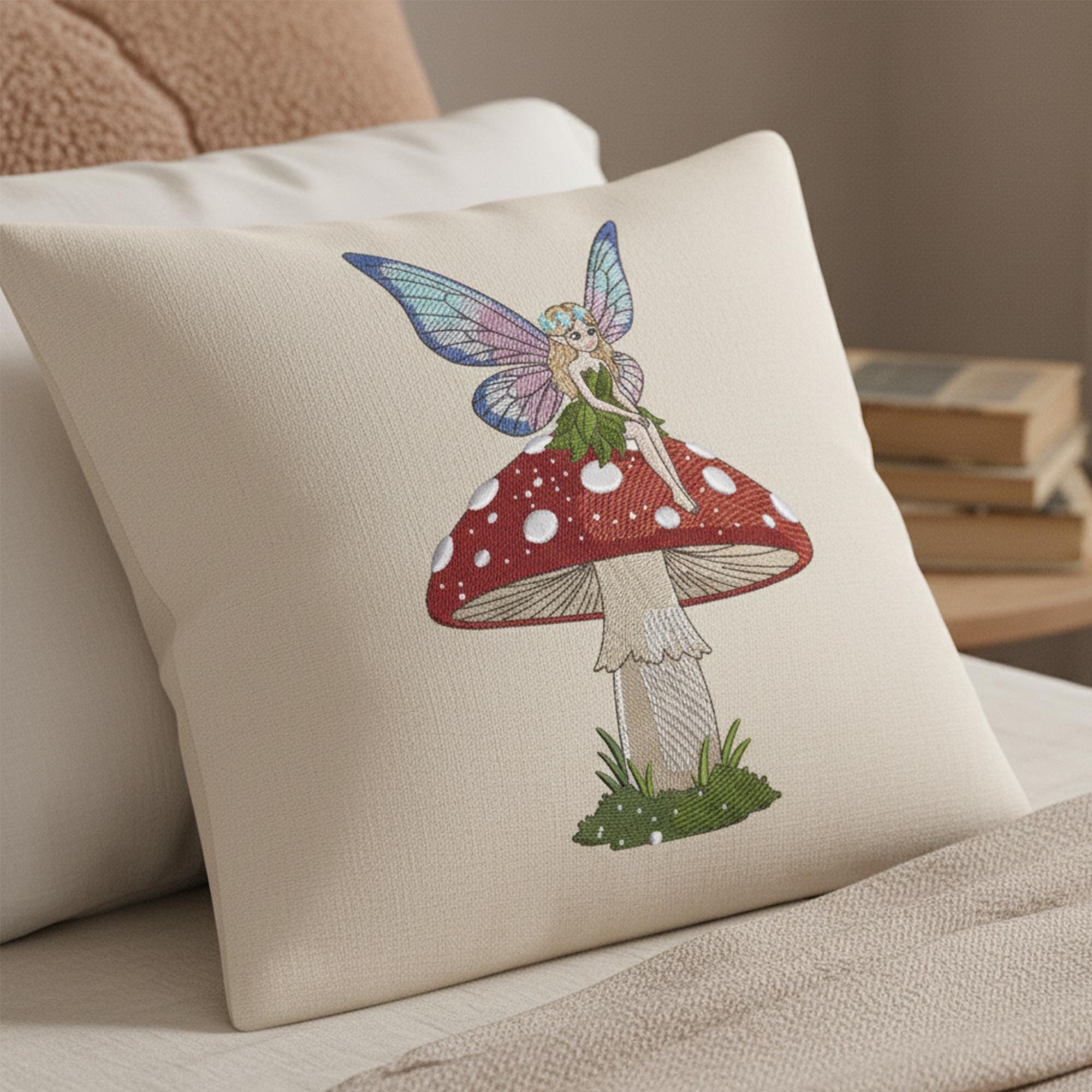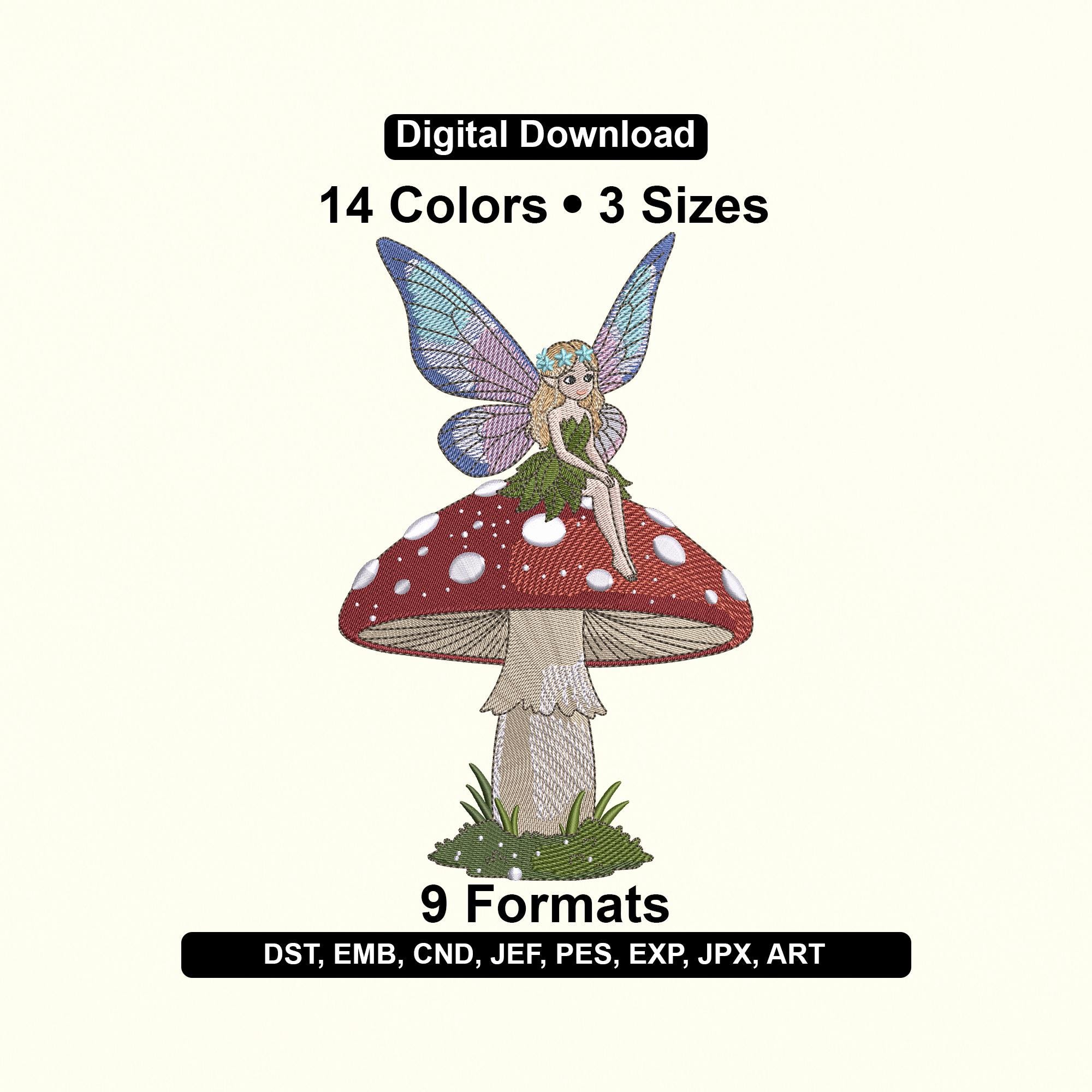 Bring magical charm to your projects with this Fairy on Mushroom Cap Embroidery Design, featuring a beautifully detailed 14-color stitch pattern. Perfect for cottagecore apparel, fantasy décor, tote bags, pillows, kids’ clothing, woodland crafts, and whimsical embroidery projects, this enchanting fairy sitting on a mushroom adds a touch of fantasy to every creation.