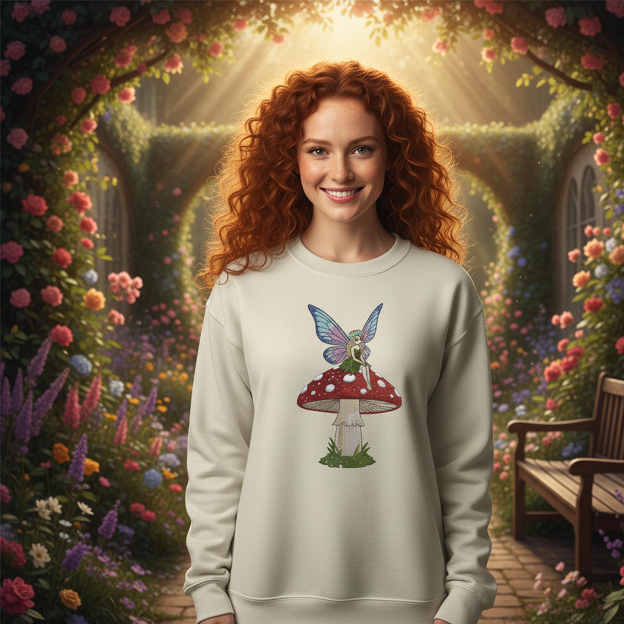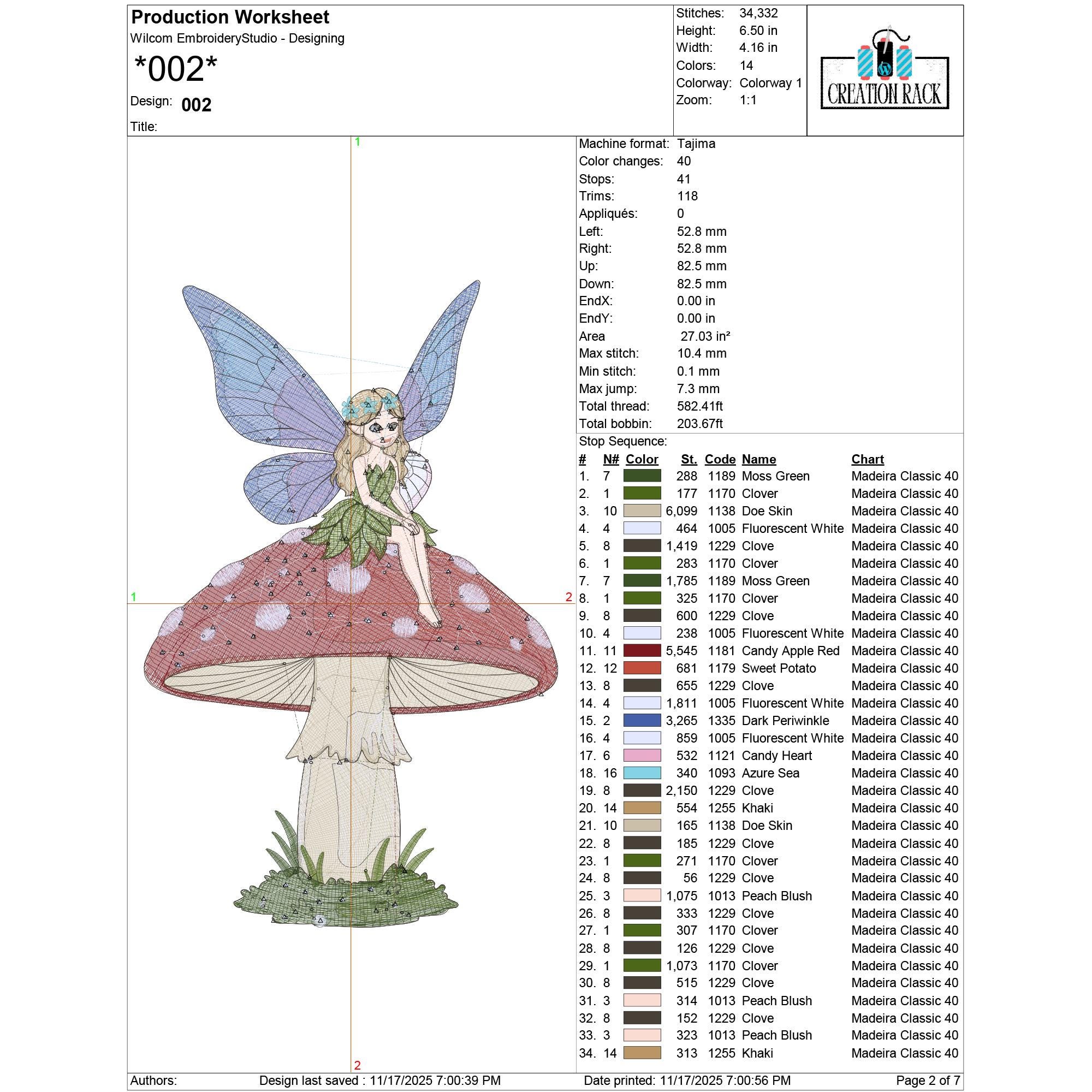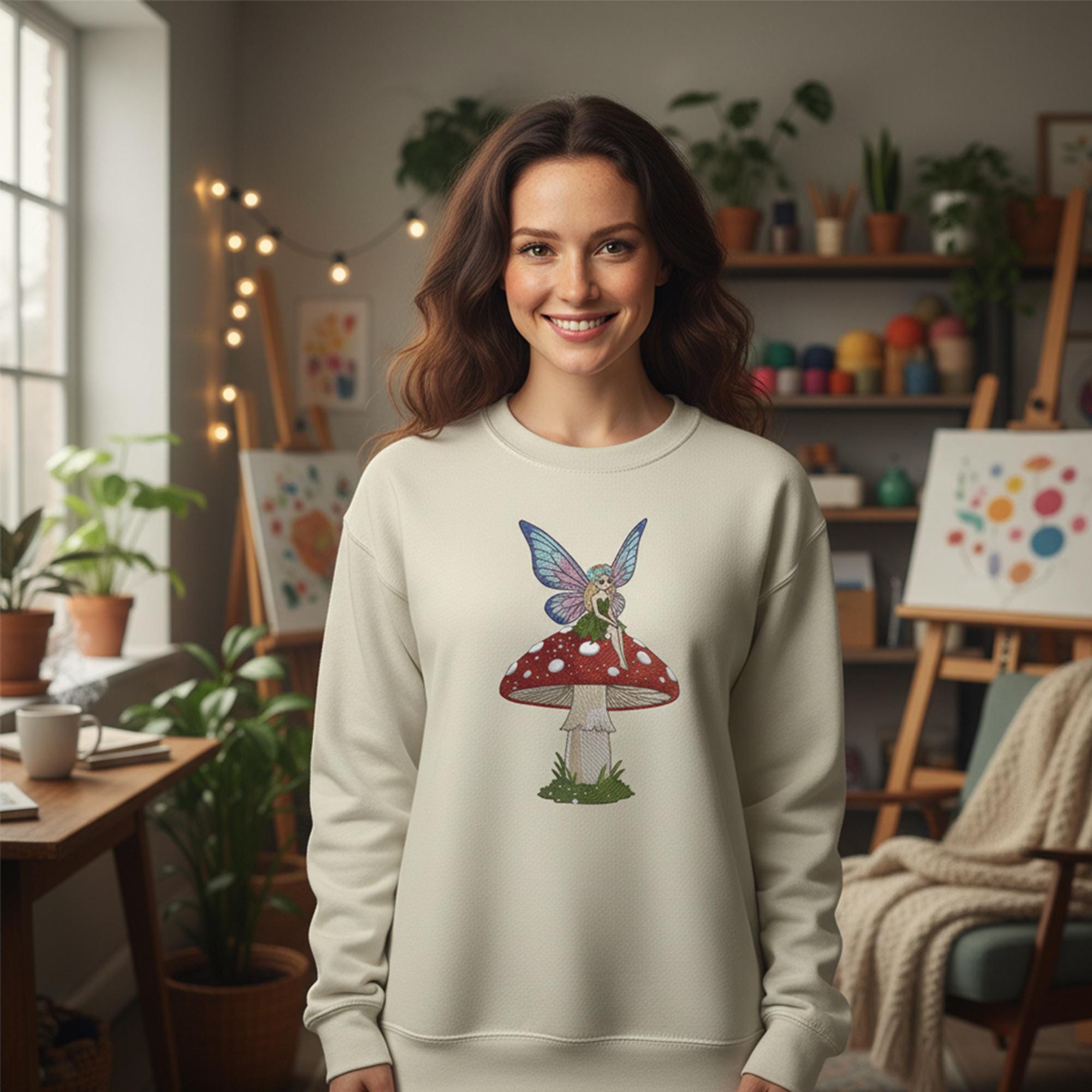 Bring magical charm to your projects with this Fairy on Mushroom Cap Embroidery Design, featuring a beautifully detailed 14-color stitch pattern. Perfect for cottagecore apparel, fantasy décor, tote bags, pillows, kids’ clothing, woodland crafts, and whimsical embroidery projects, this enchanting fairy sitting on a mushroom adds a touch of fantasy to every creation.