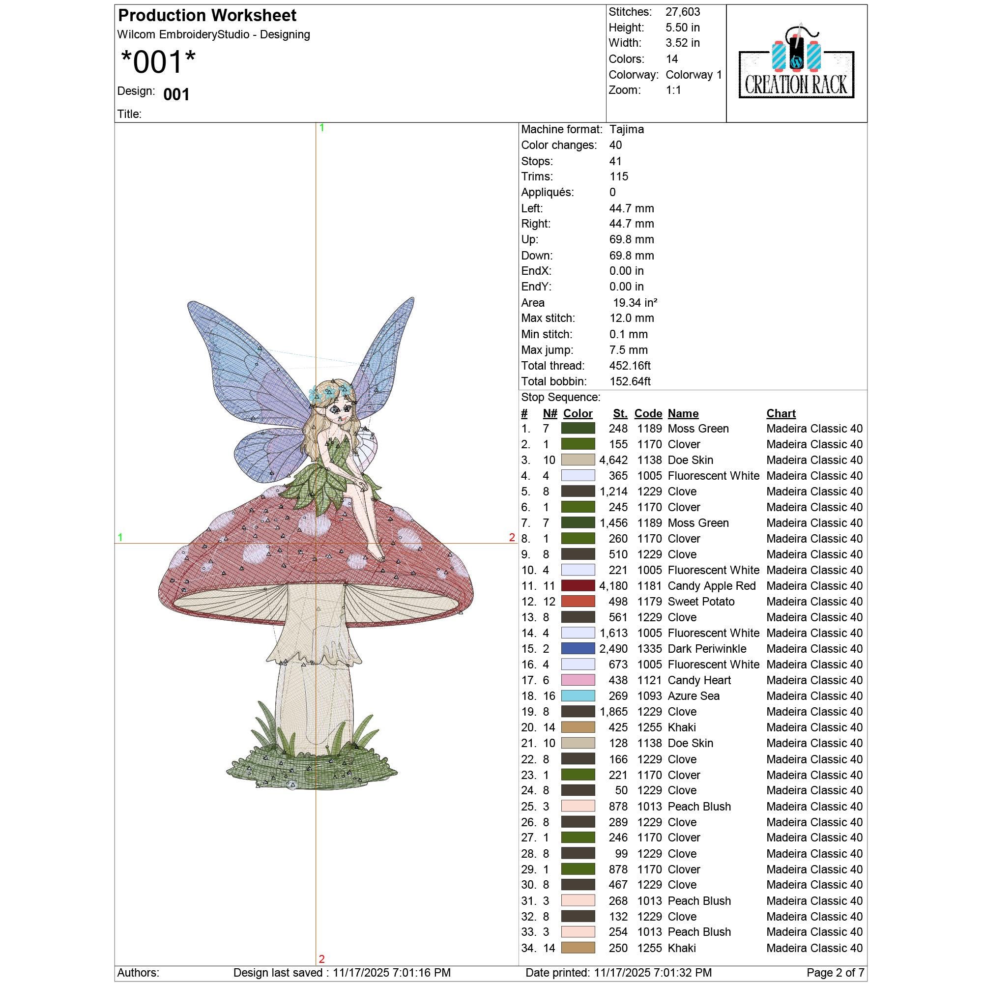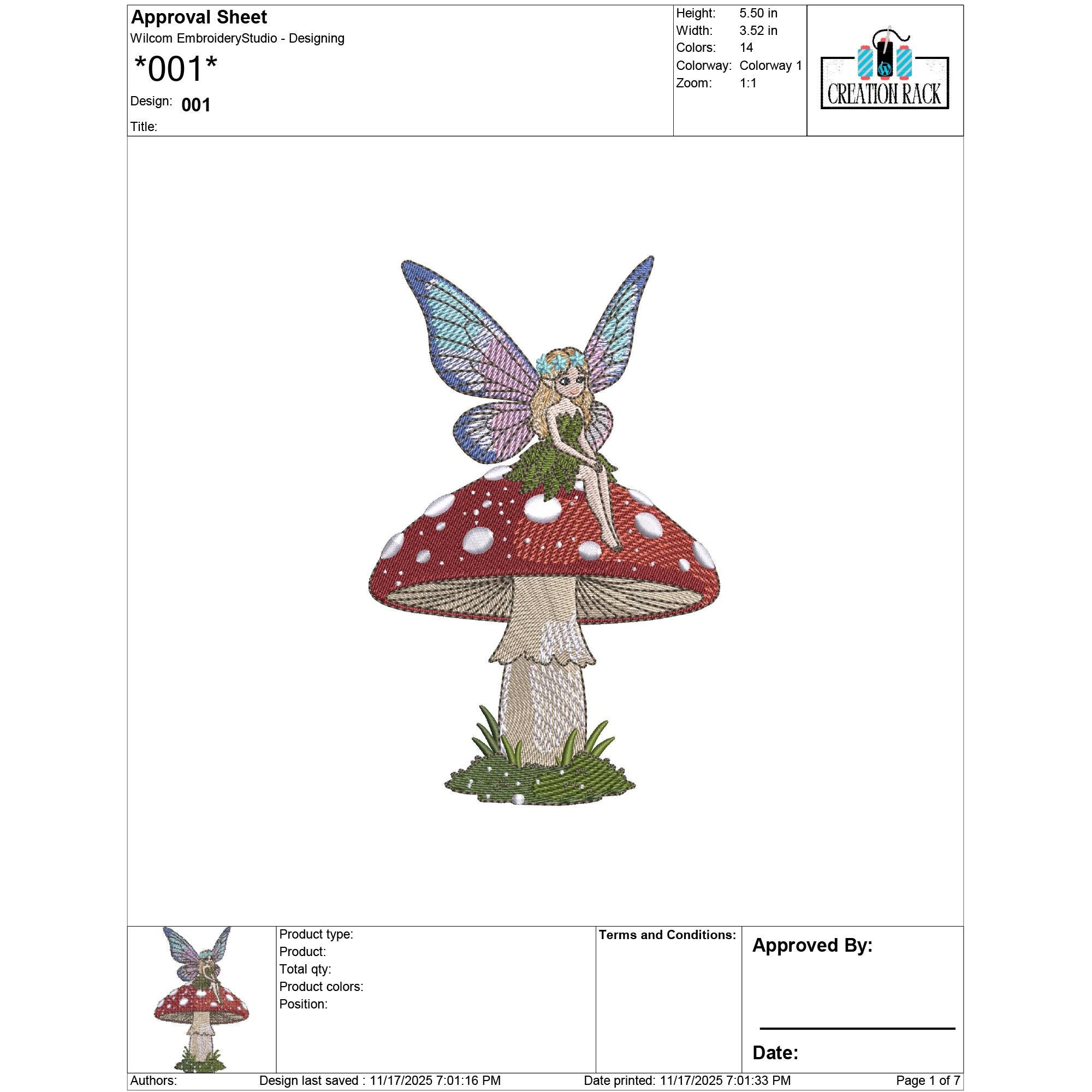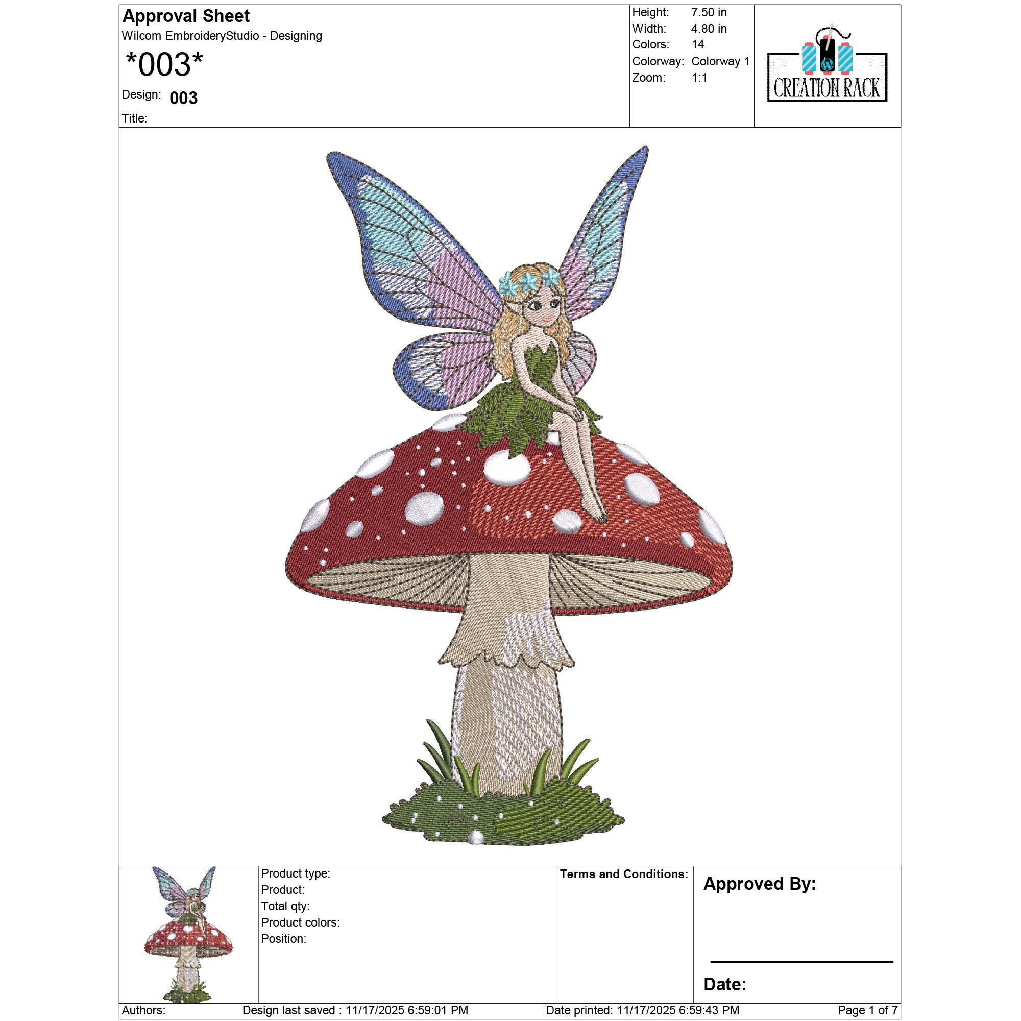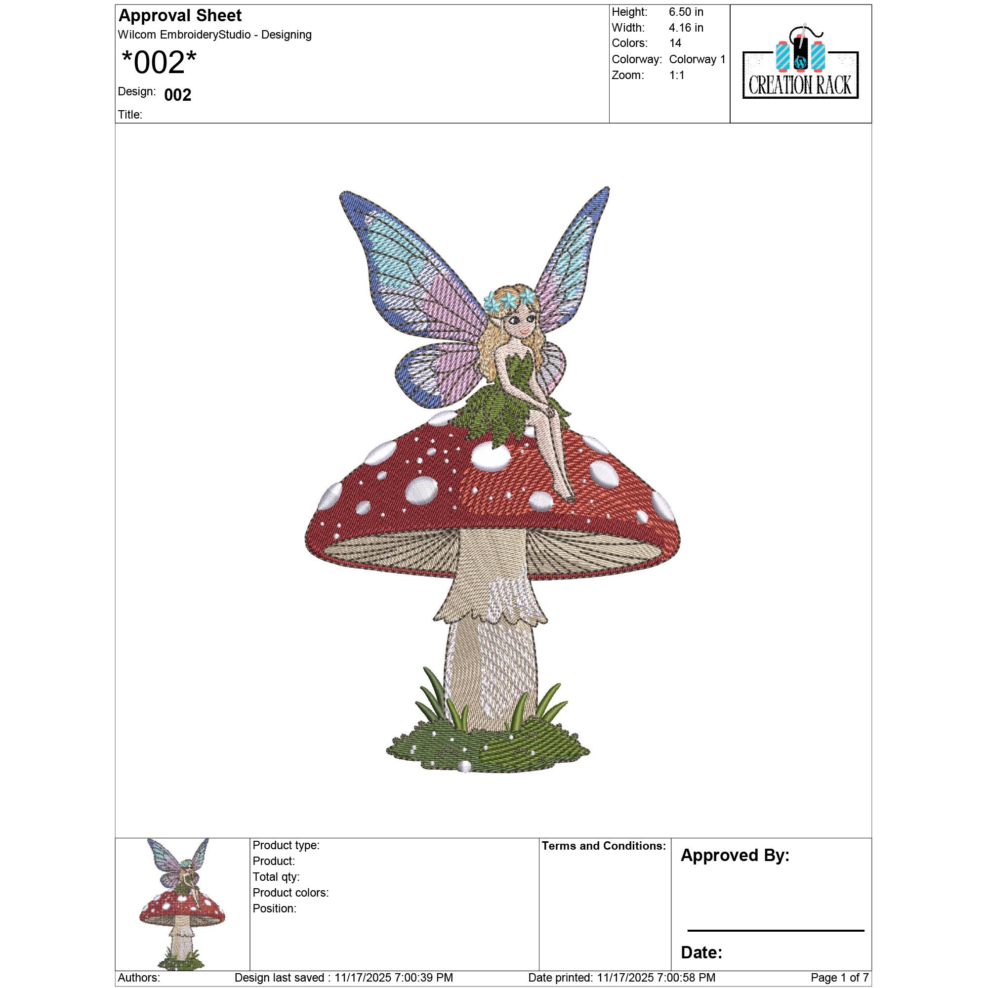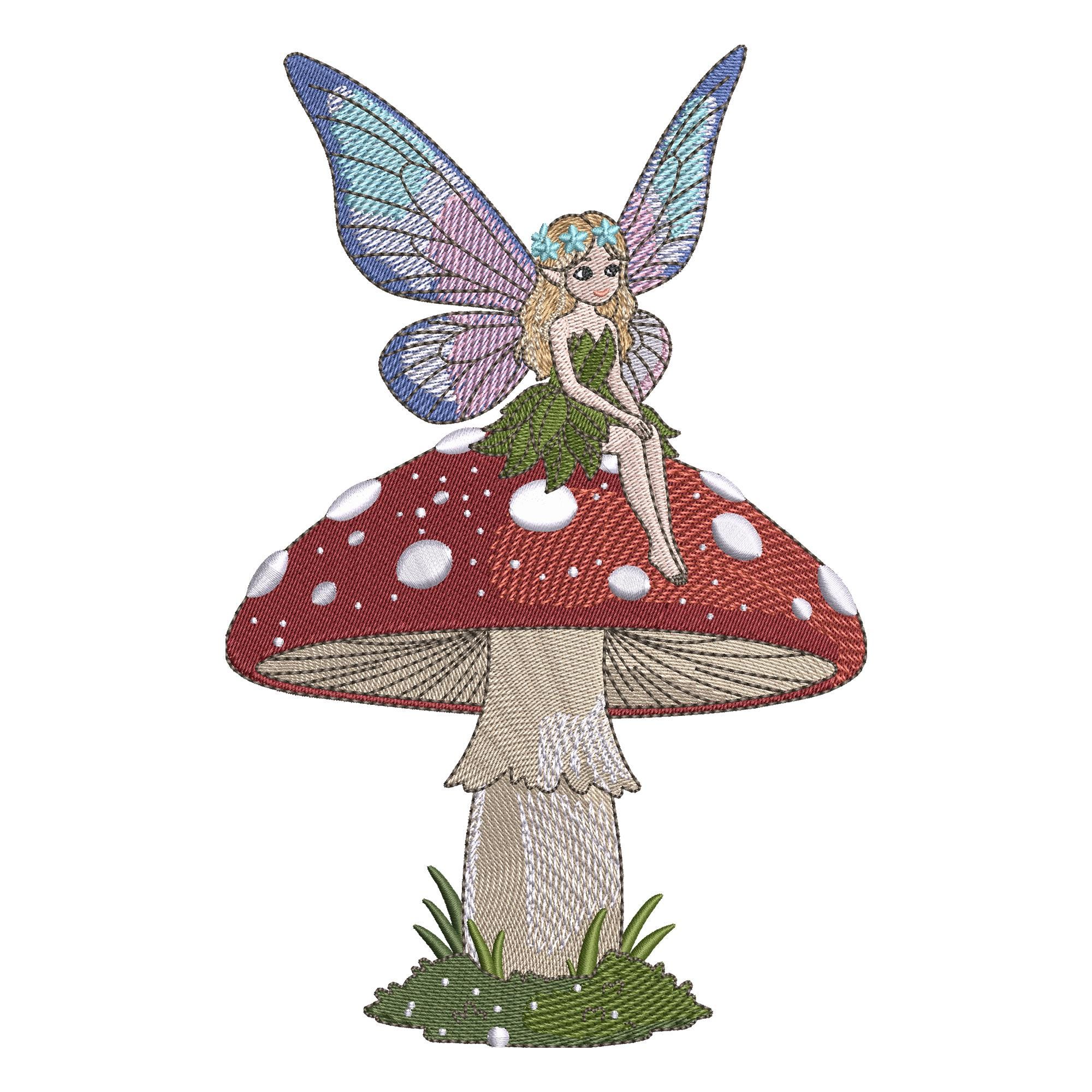 Fairy on Mushroom Cap Embroidery Design – Fantasy Machine Embroidery File