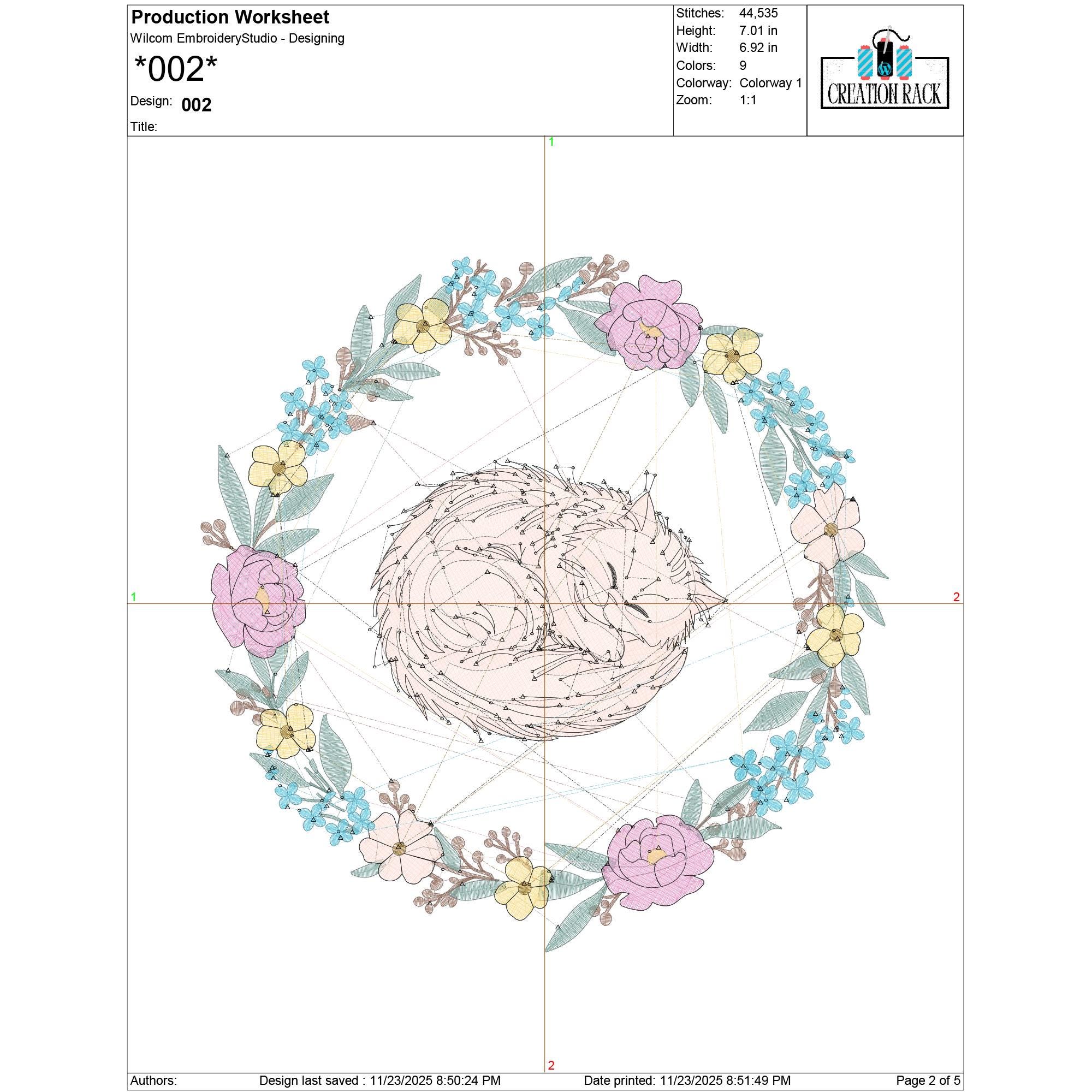 This cat in floral wreath embroidery file is professionally digitized for smooth stitching, clear details, and beautiful results in every size. A lovely addition to any animal or floral embroidery collection.