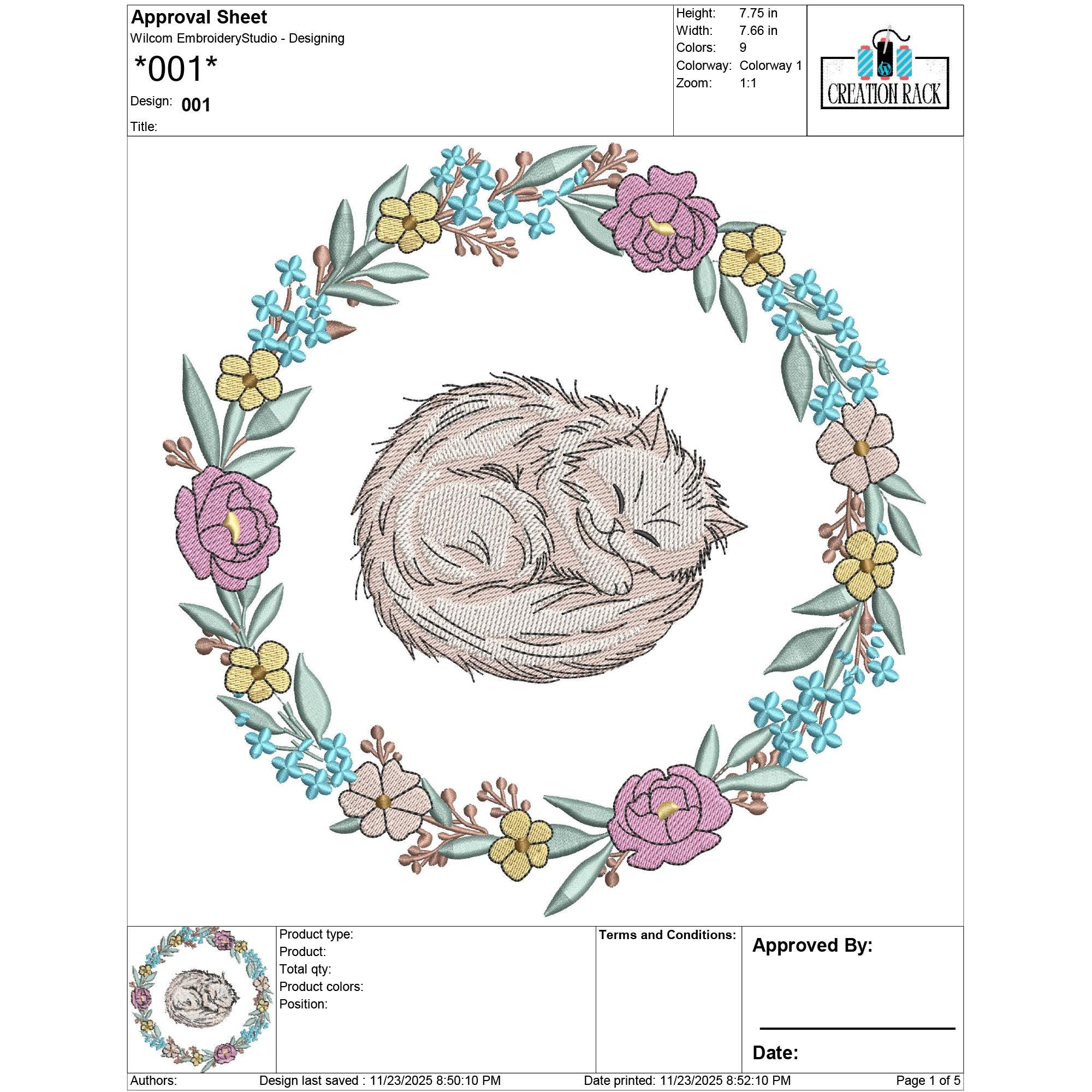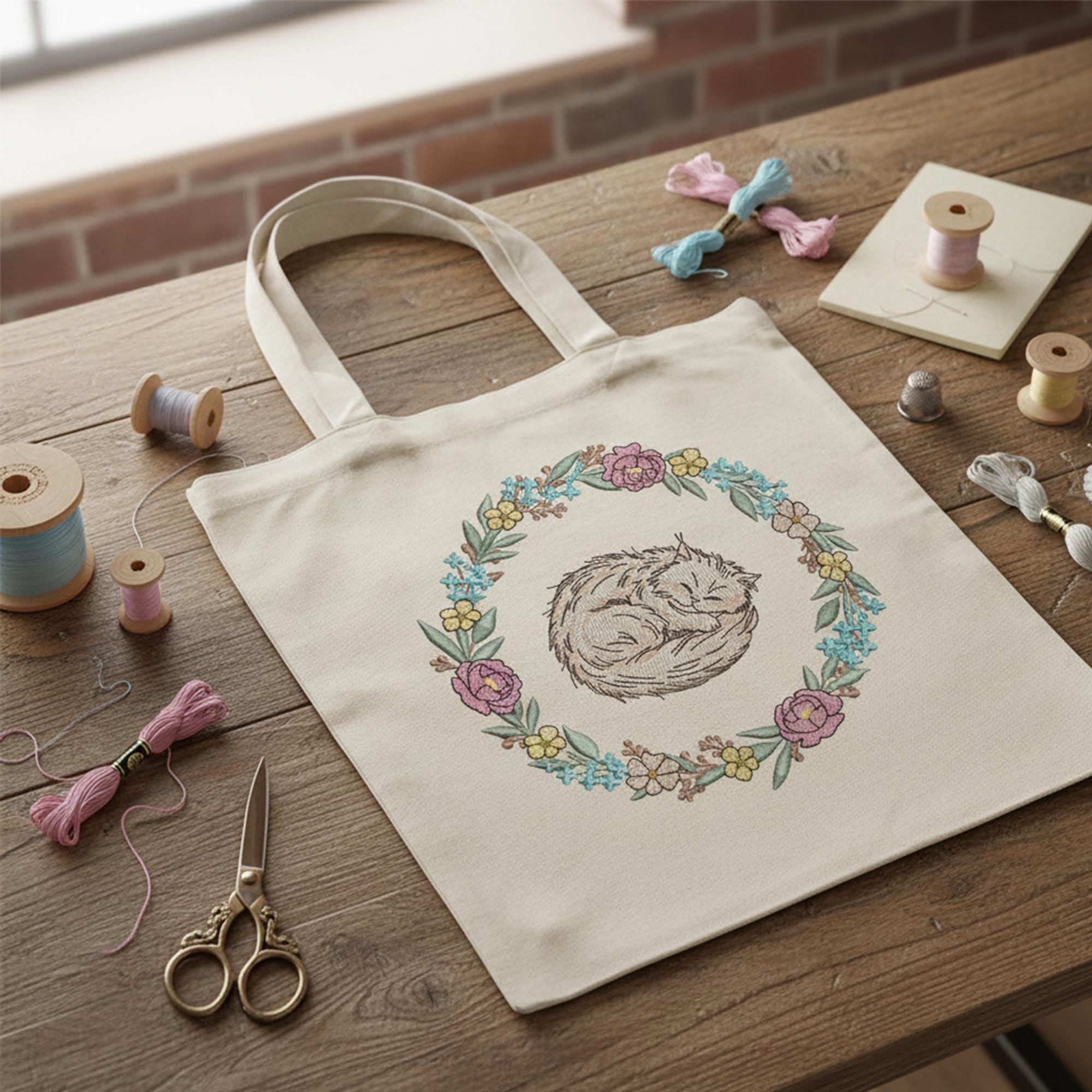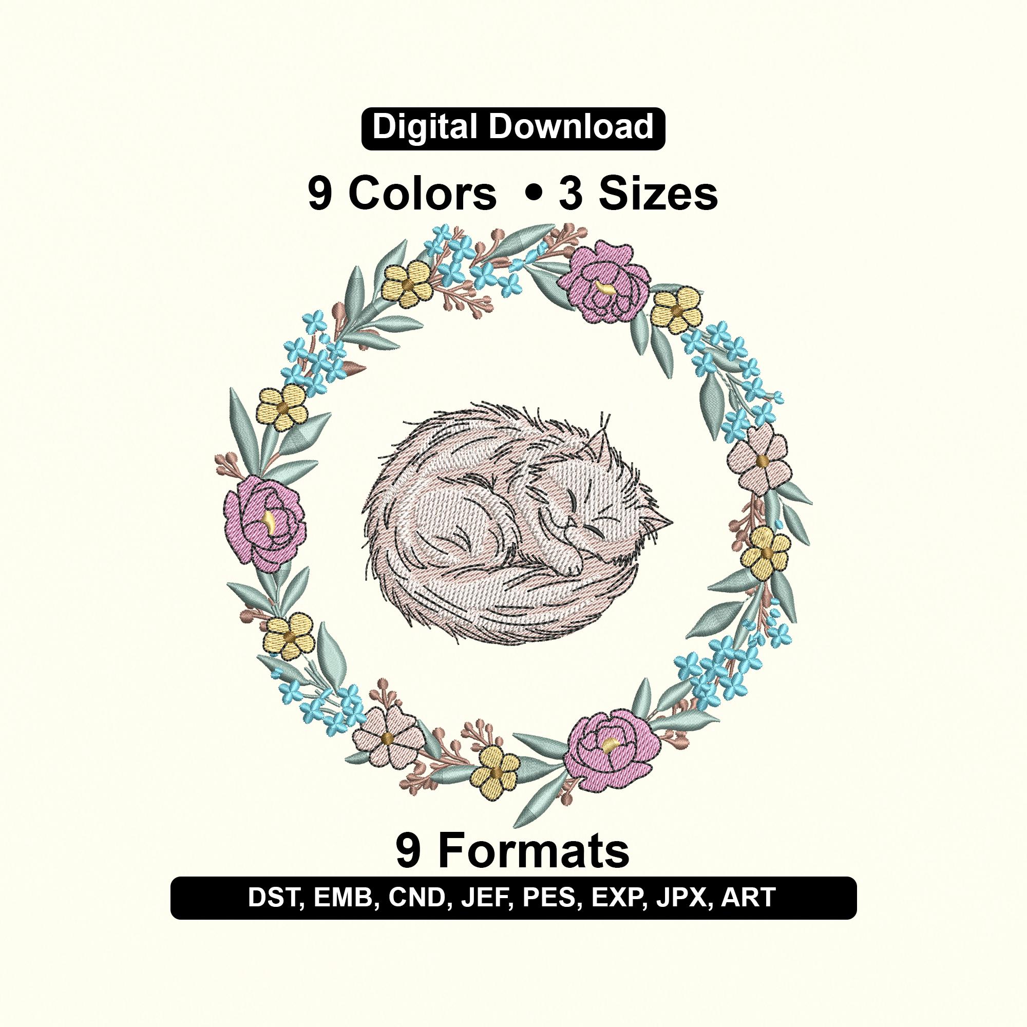 Add charming, whimsical beauty to your projects with this Cat in Floral Wreath Embroidery Design, featuring a detailed 9-color stitch pattern. Perfect for tote bags, pillows, children’s apparel, home décor, pet accessories, gifts, and floral craft projects, this sweet cat surrounded by blossoms brings a delightful artistic touch to any creation.