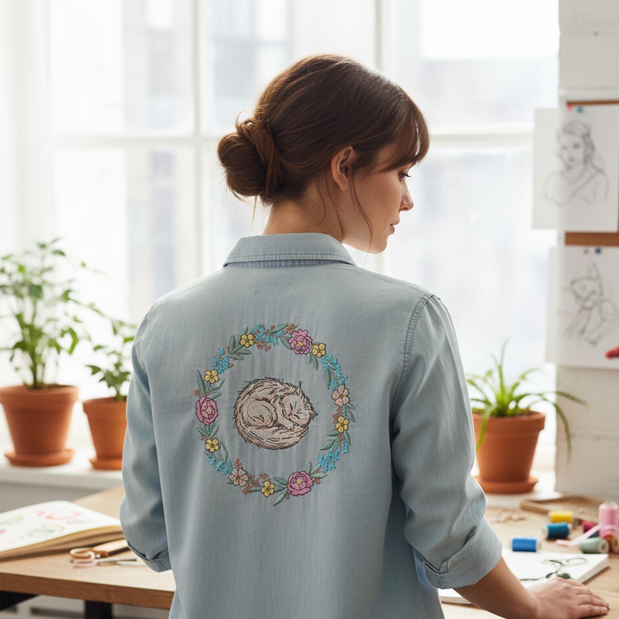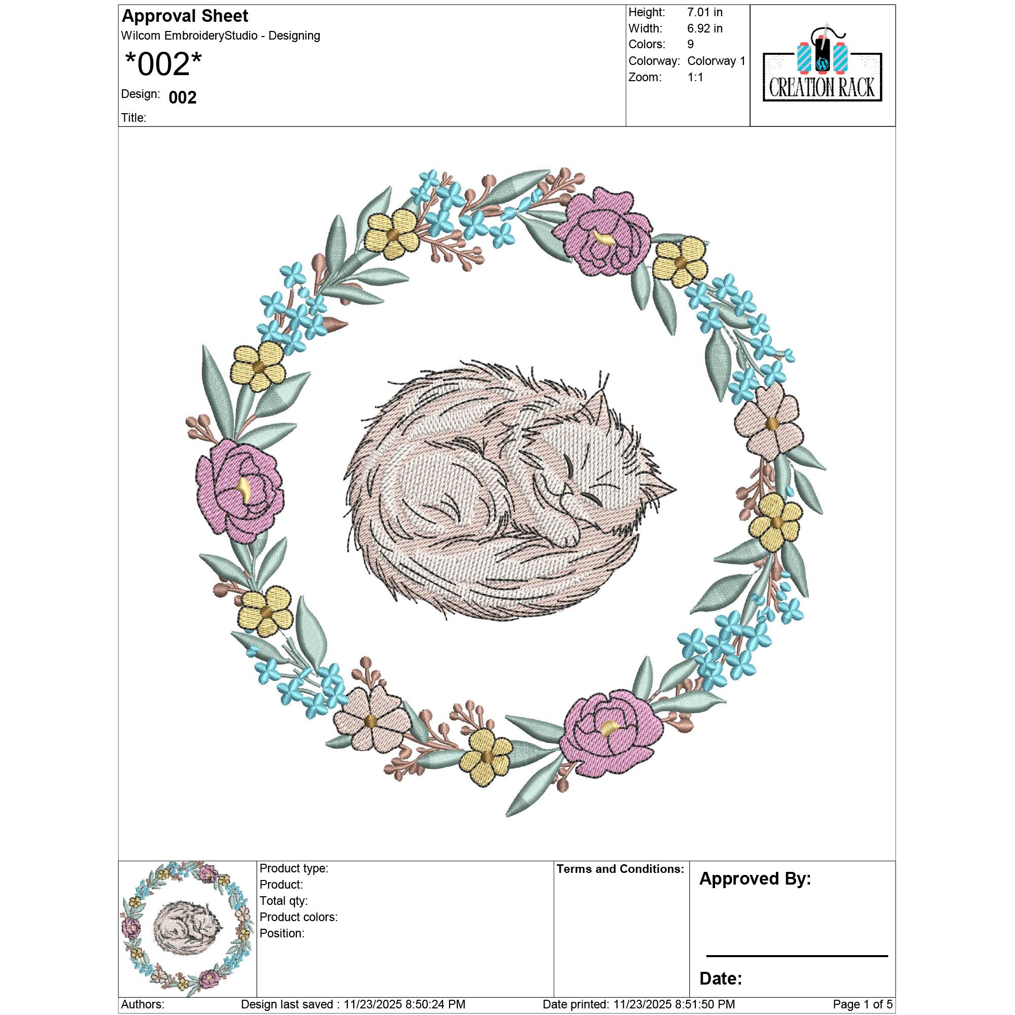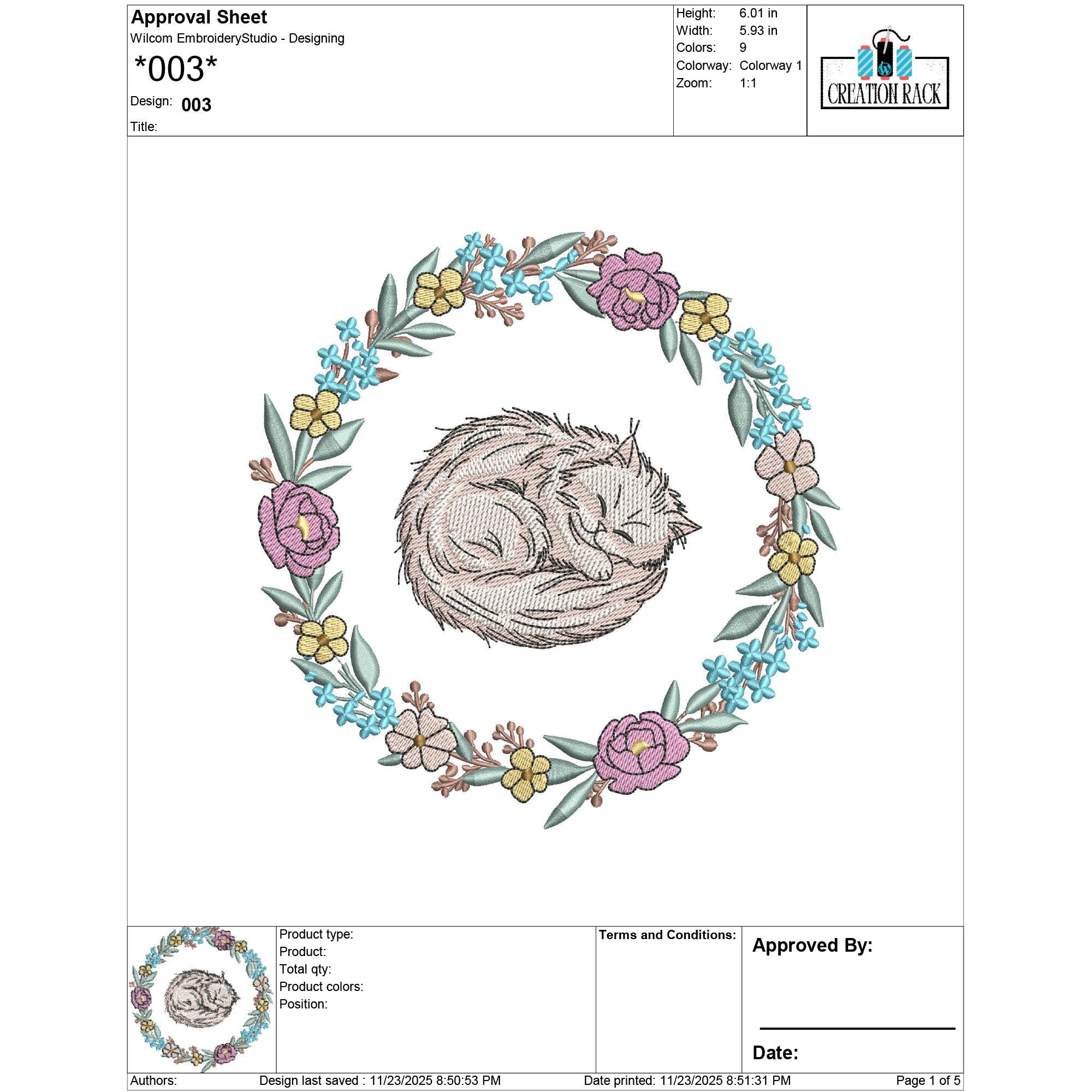 Add charming, whimsical beauty to your projects with this Cat in Floral Wreath Embroidery Design, featuring a detailed 9-color stitch pattern. Perfect for tote bags, pillows, children’s apparel, home décor, pet accessories, gifts, and floral craft projects, this sweet cat surrounded by blossoms brings a delightful artistic touch to any creation.