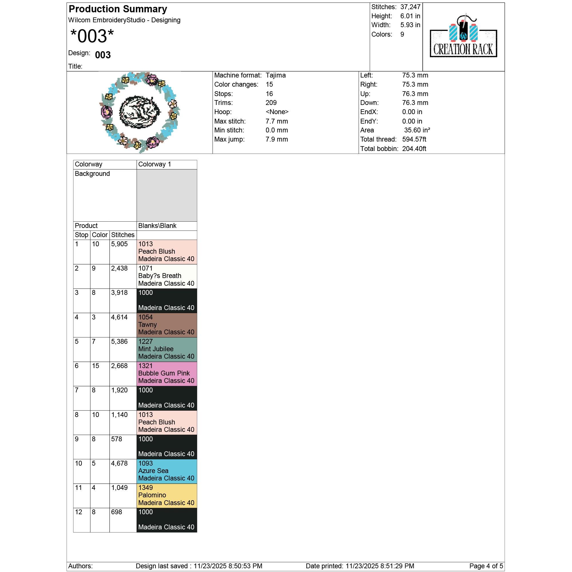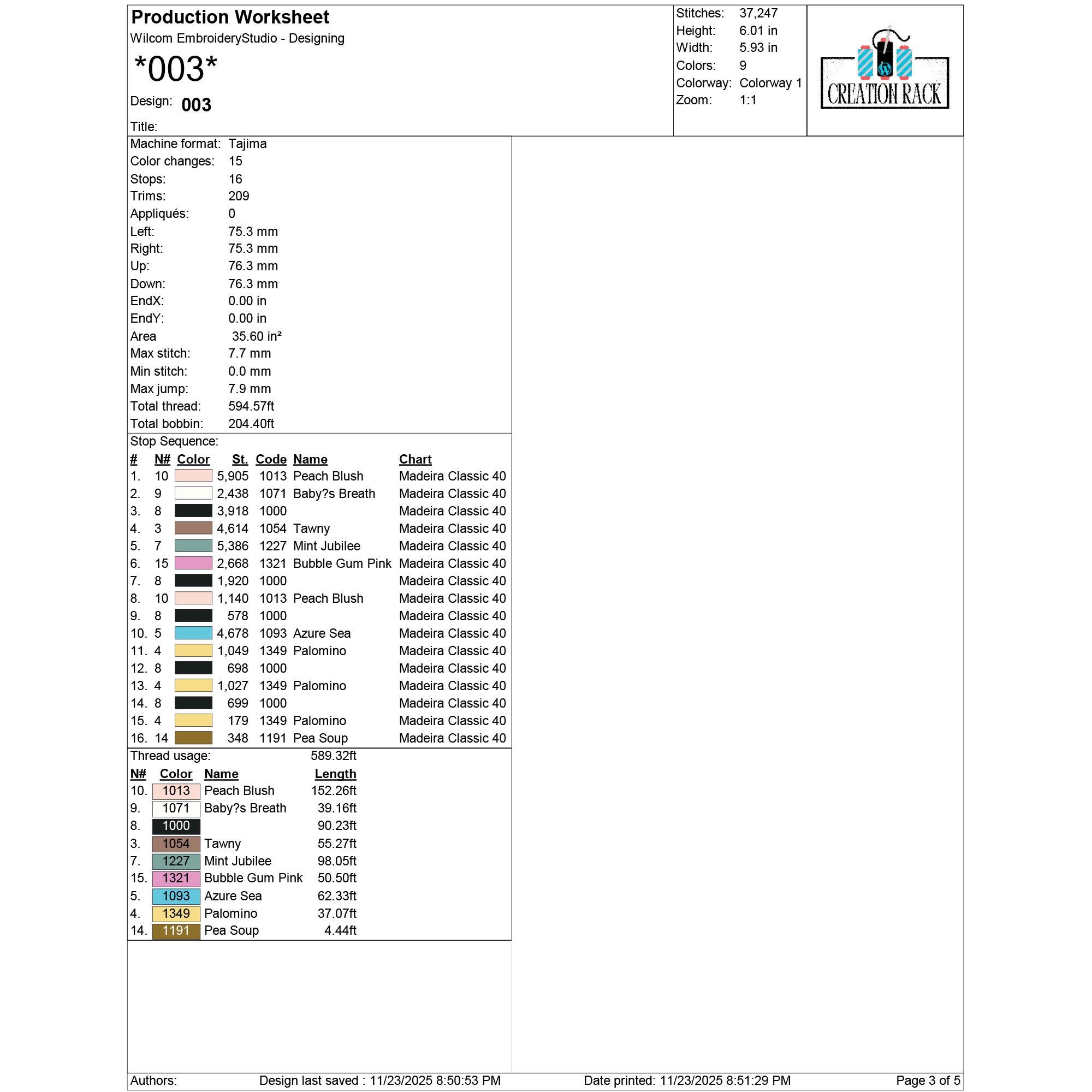003: 37,247 stitches | 6.01 in × 5.93 in | 9 colors