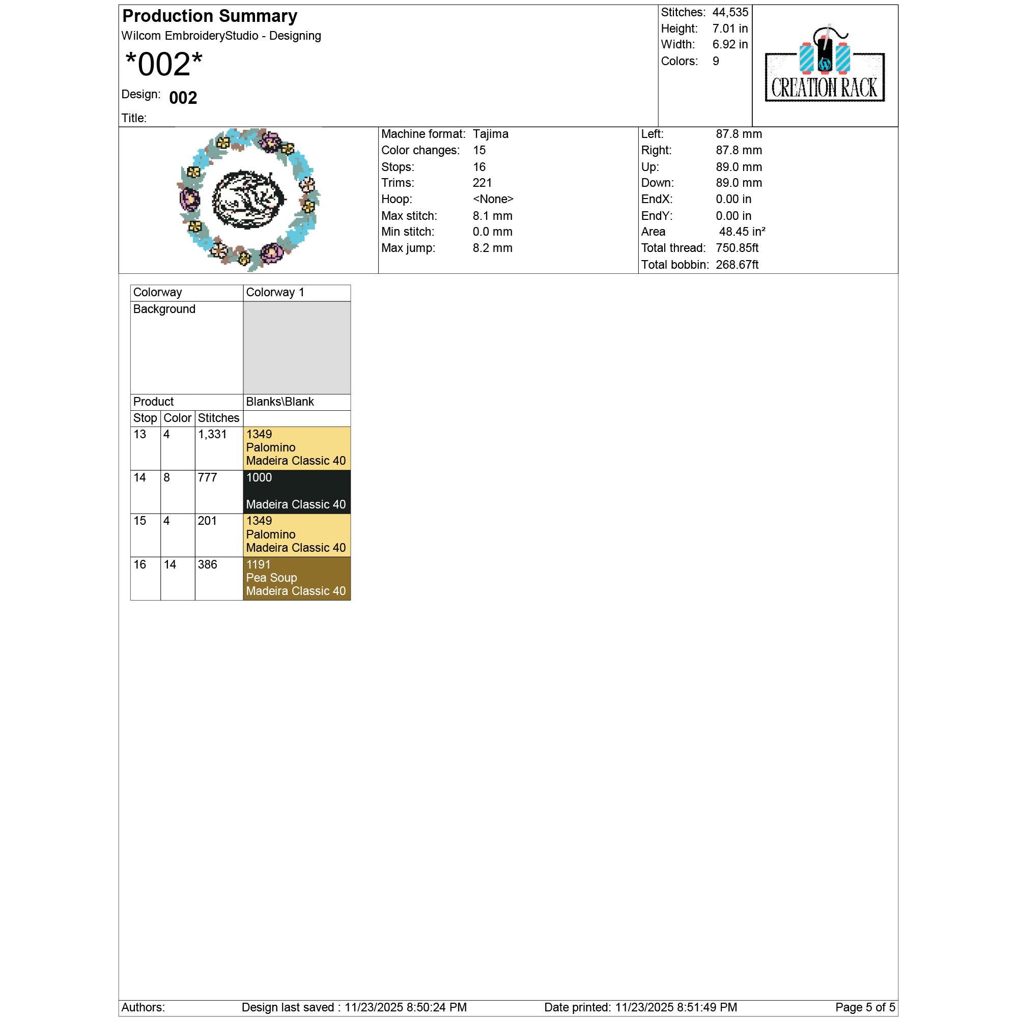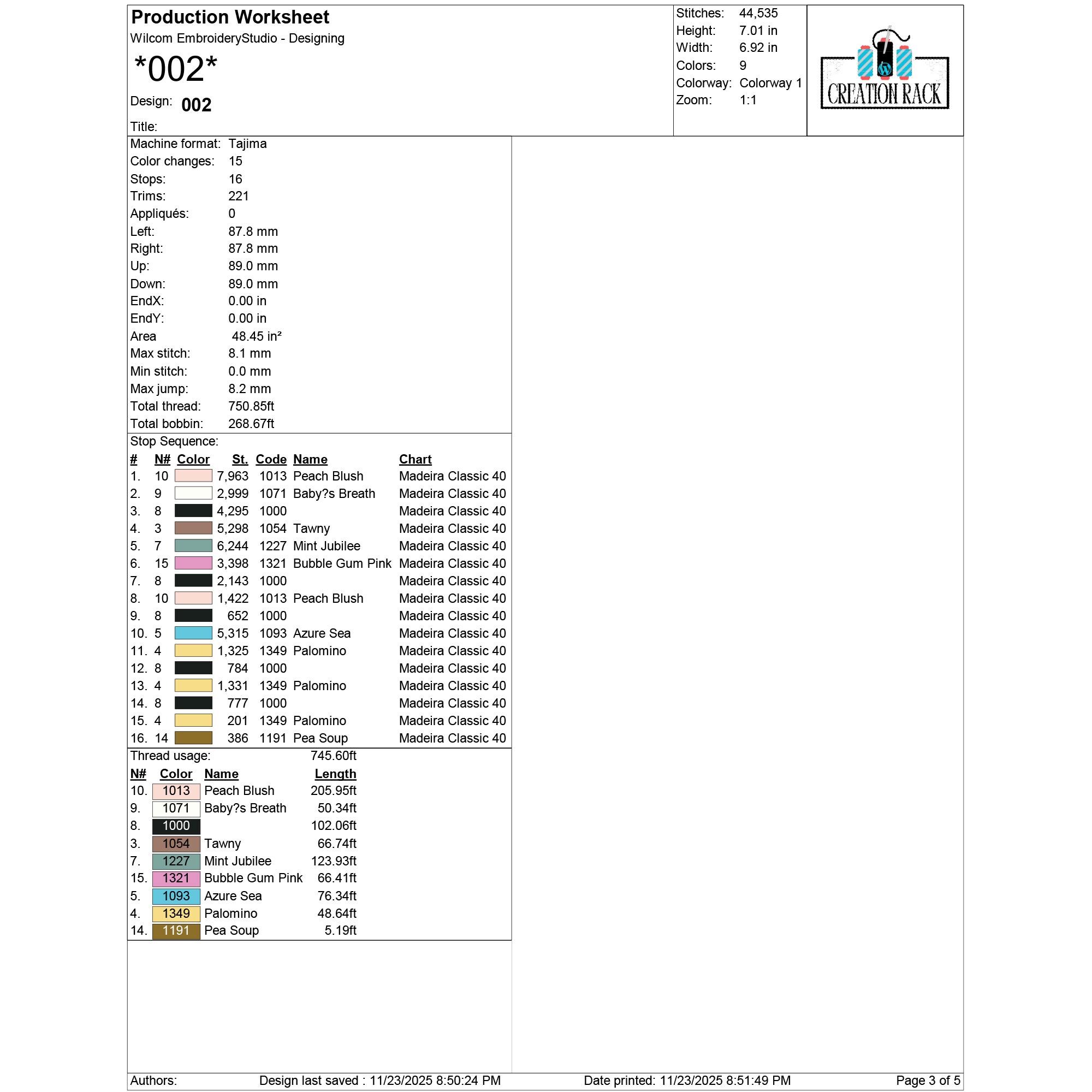 002: 44,535 stitches | 7.01 in × 6.92 in | 9 colors
