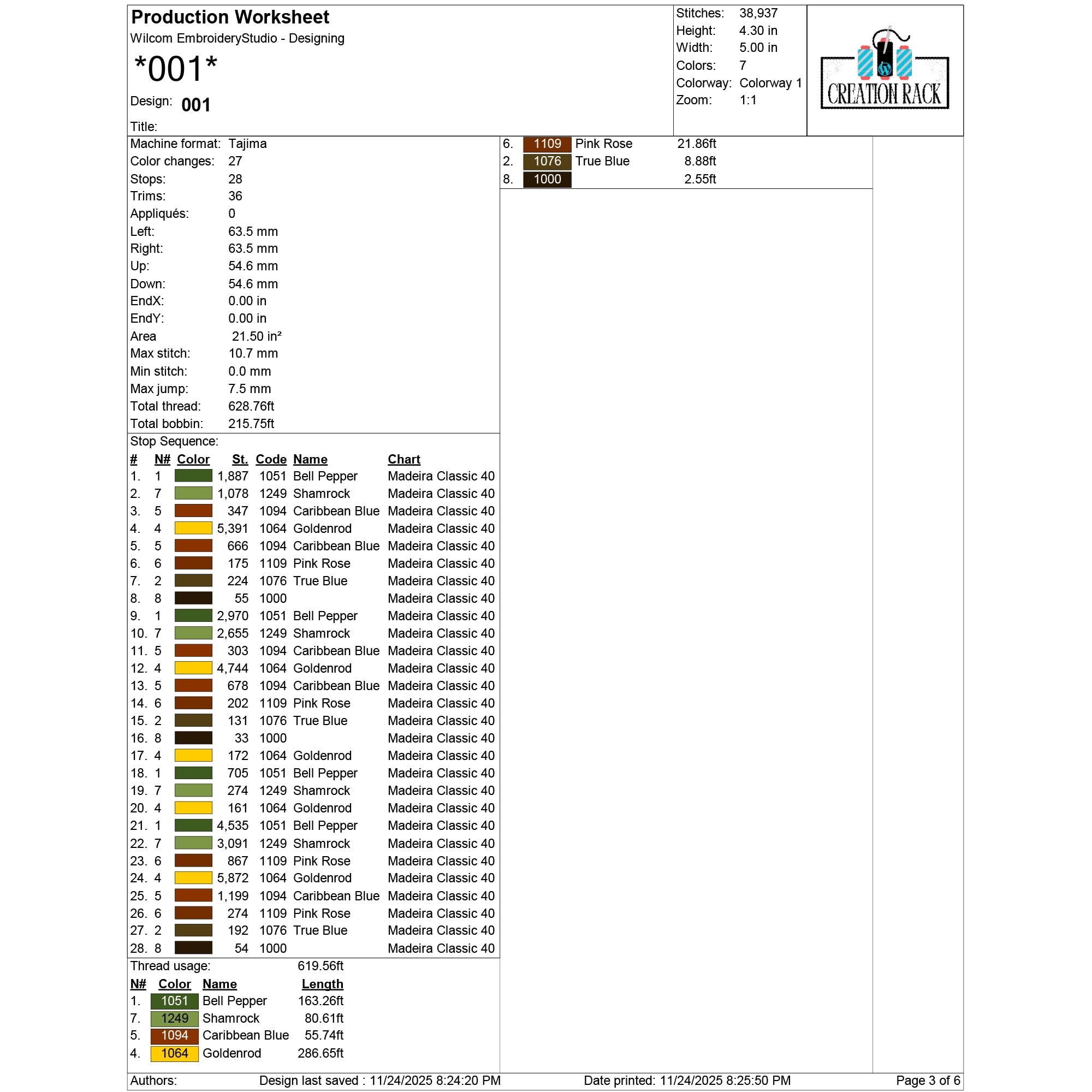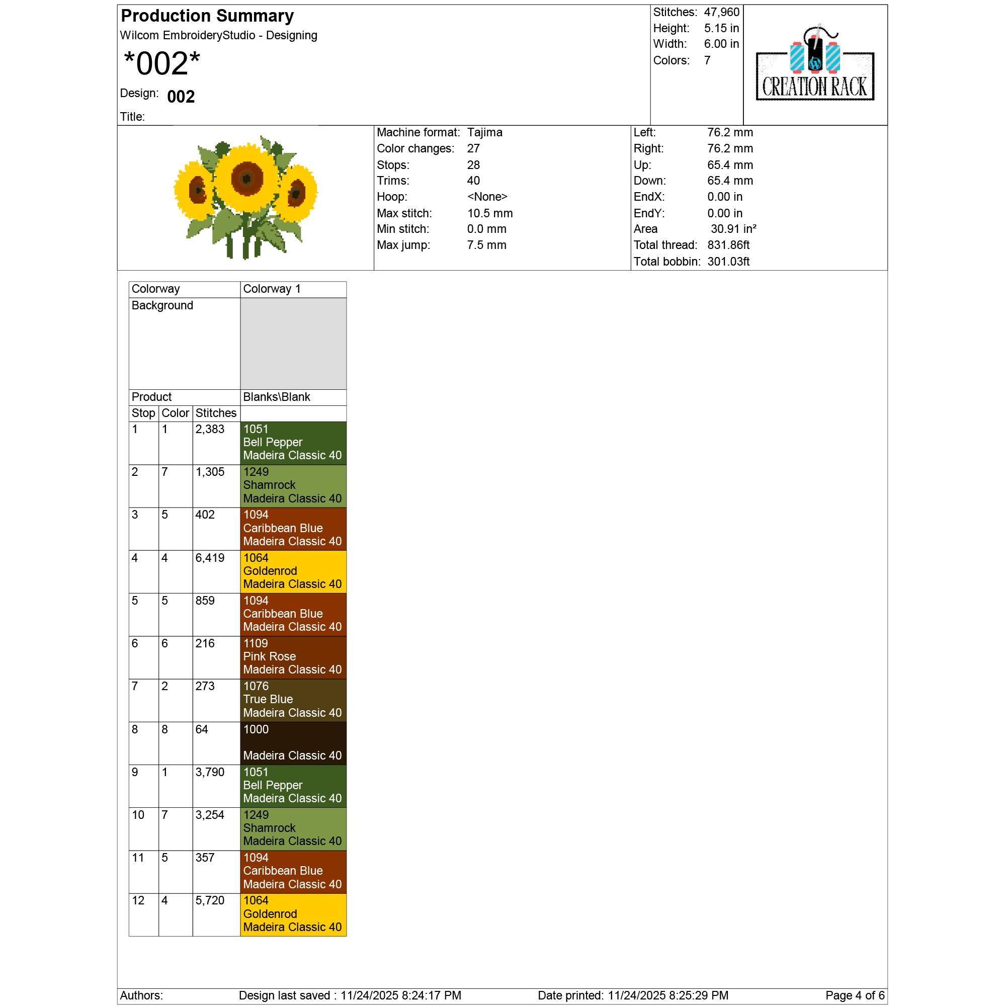 002: 47,960 stitches | 5.15 in × 6.00 in | 7 colors