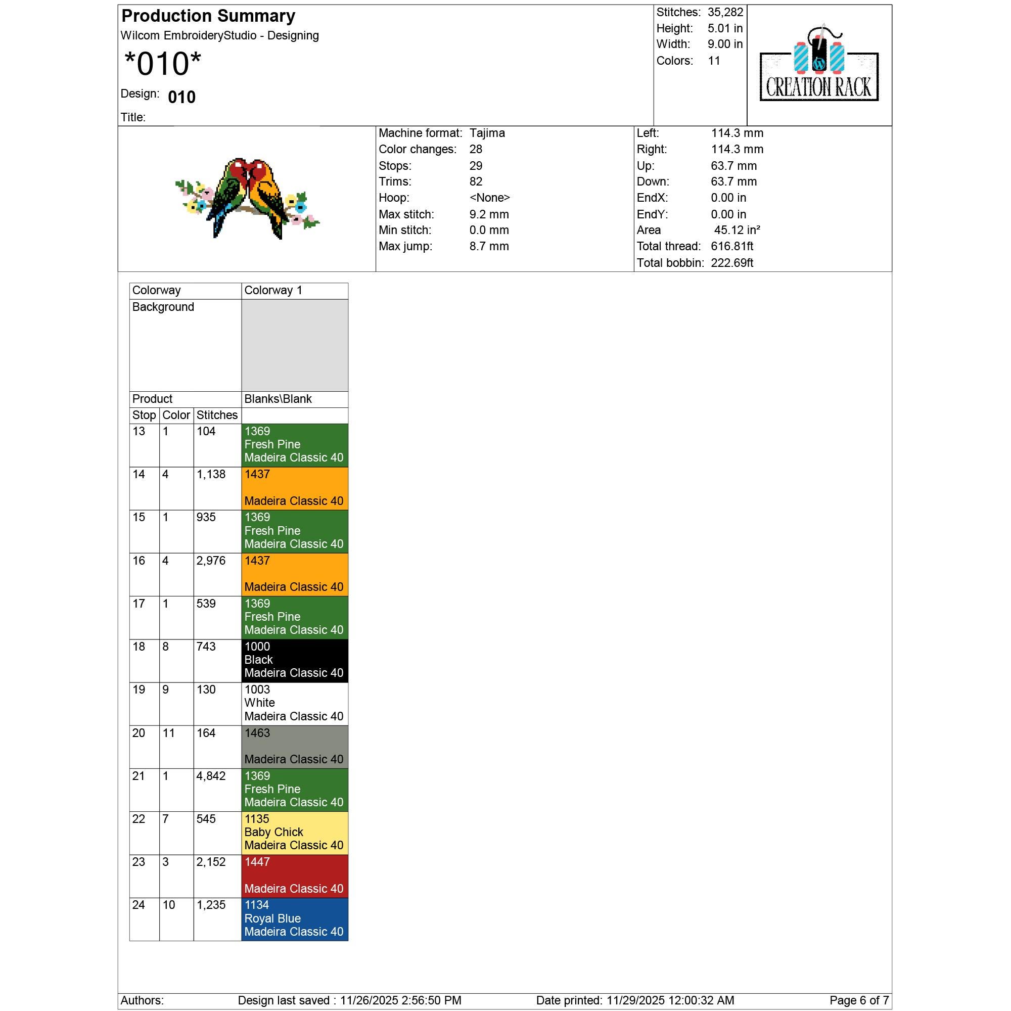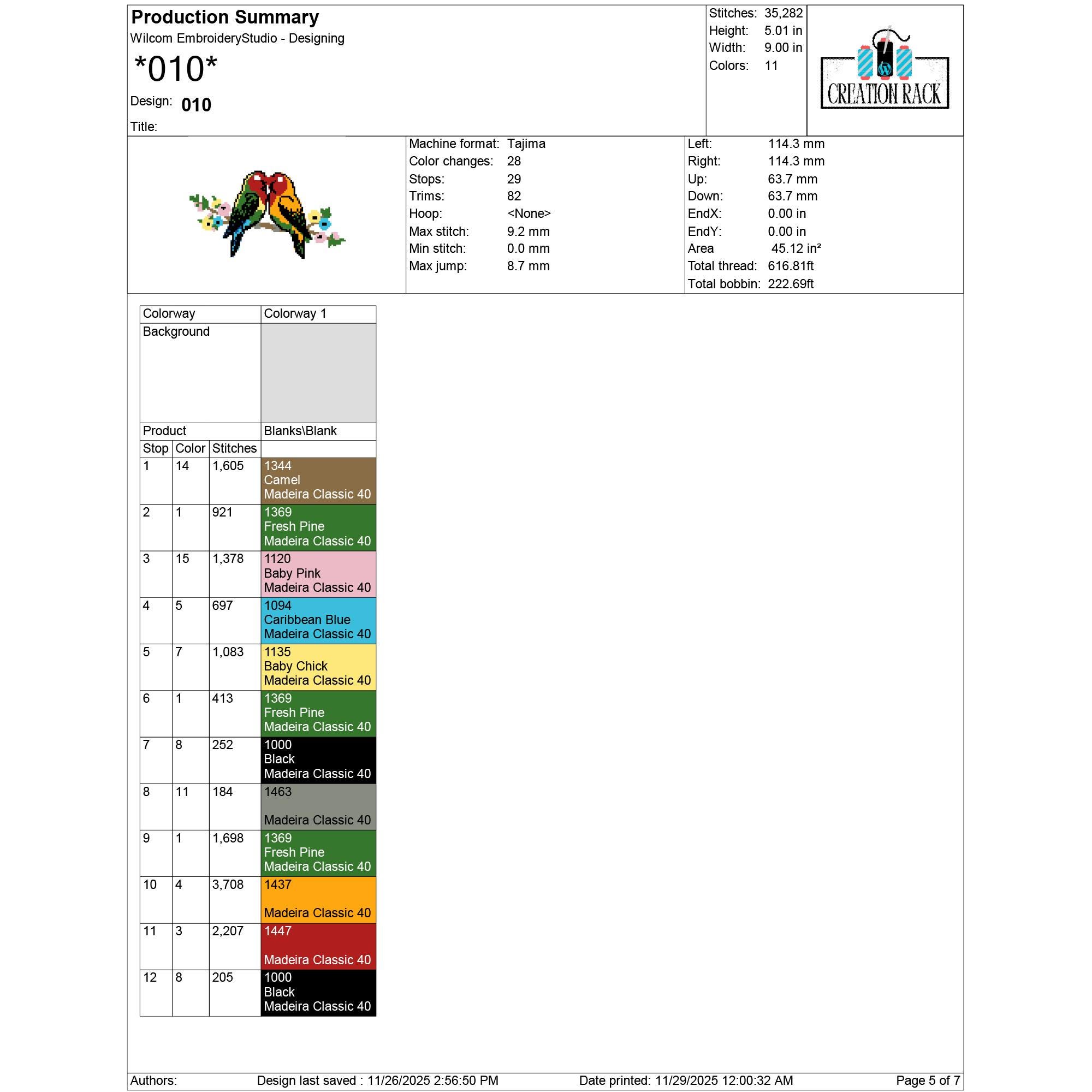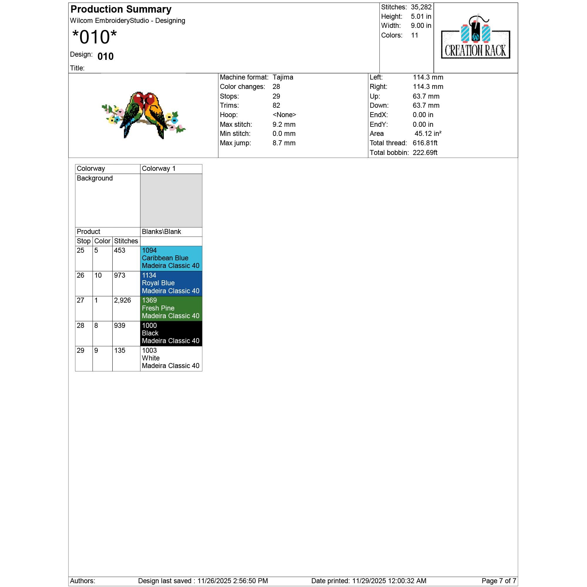 010: 35,282 stitches | 5.01 in × 9.00 in (12.73 cm × 22.86 cm / 127.3 mm × 228.6 mm) | 11 colors