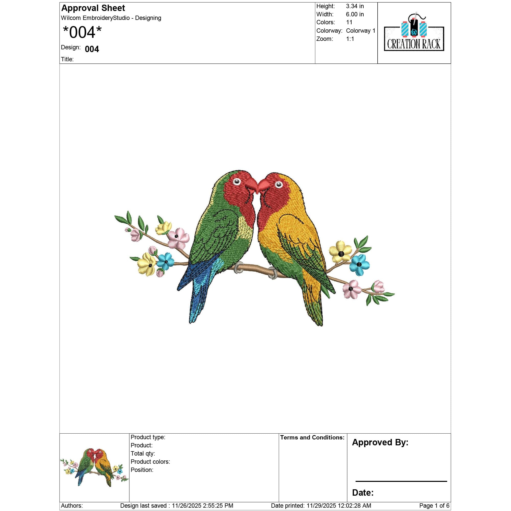 Stitch vibrant tropical beauty into your creations with this Parrot Birds Embroidery Design, featuring a stunning 11-color bird illustration perfect for clothing, cushions, bags, wall décor, and creative craft projects. This professionally digitized design includes 10 embroidered sizes, plus editable files so you can customize it for personal or commercial embroidery projects.